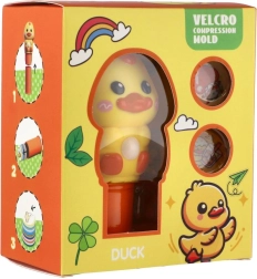 Ergonomiczne „ciało” kaczuszki wygodnie leży w dłoni i pozwala dzieciom wykonywać czyste, powtarzalne odbicia bez wysiłku.