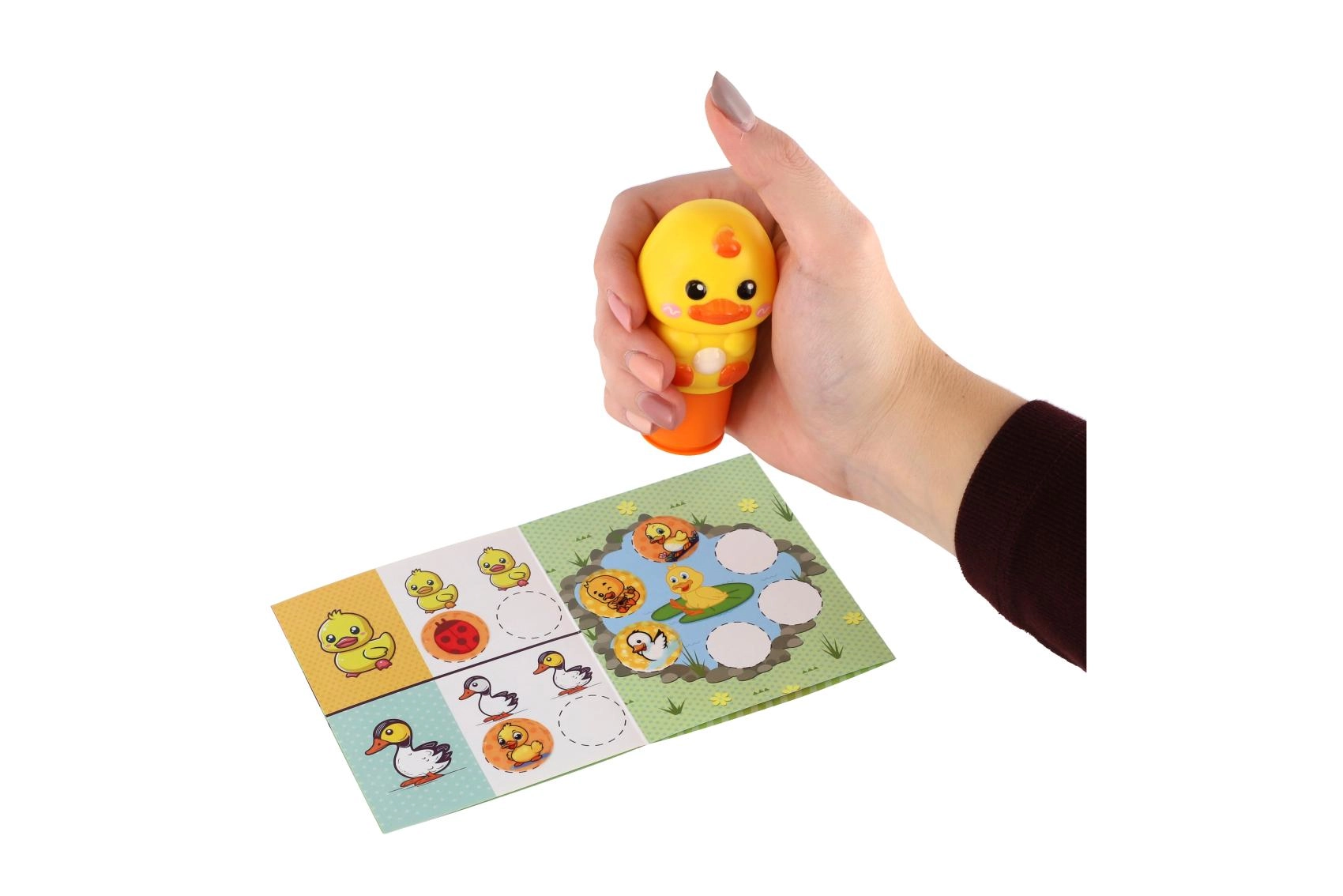 Odkryj zabawną pieczątkę w kształcie żółtej kaczuszki, która zamieni każde tworzenie w radość. Dzięki wygodnemu chwytowi i czystemu odbiciu pieczątka świetnie sprawdza się w małych dziecięcych dłoniach. W opakowaniu znajdują się także okrągłe naklejki z różnymi motywami kaczuszek oraz tematyczny arkusz, na który dzieci mogą je naklejać.