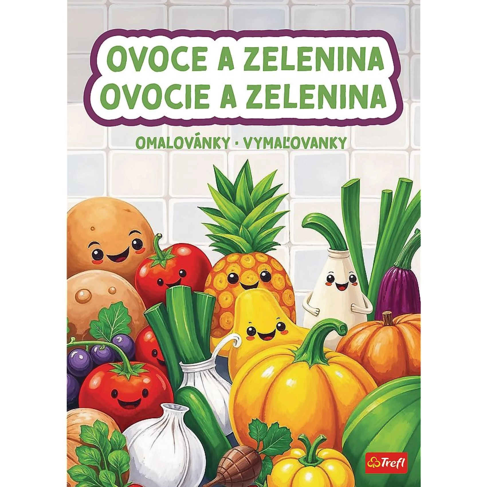 • Zabawne motywy – uśmiechnięte owoce i warzywa motywują dzieci do kolorowania.