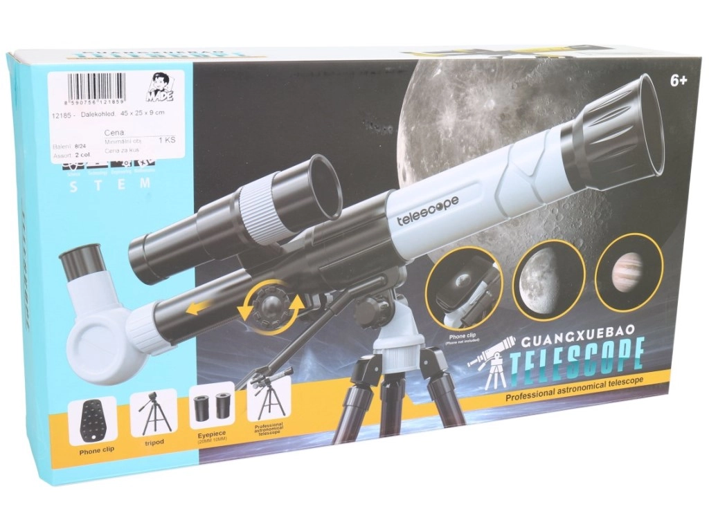 Ten dziecięcy teleskop jest wierną imitacją prawdziwego instrumentu astronomicznego i świetnie wspiera ciekawość oraz pierwsze kroki w świecie astronomii. Dzięki trzem poziomom powiększenia 20x / 30x / 40x dzieci będą cieszyć się obserwacją Księżyca, gwiazd oraz odległych obiektów w krajobrazie.