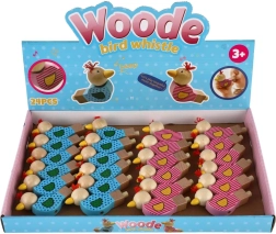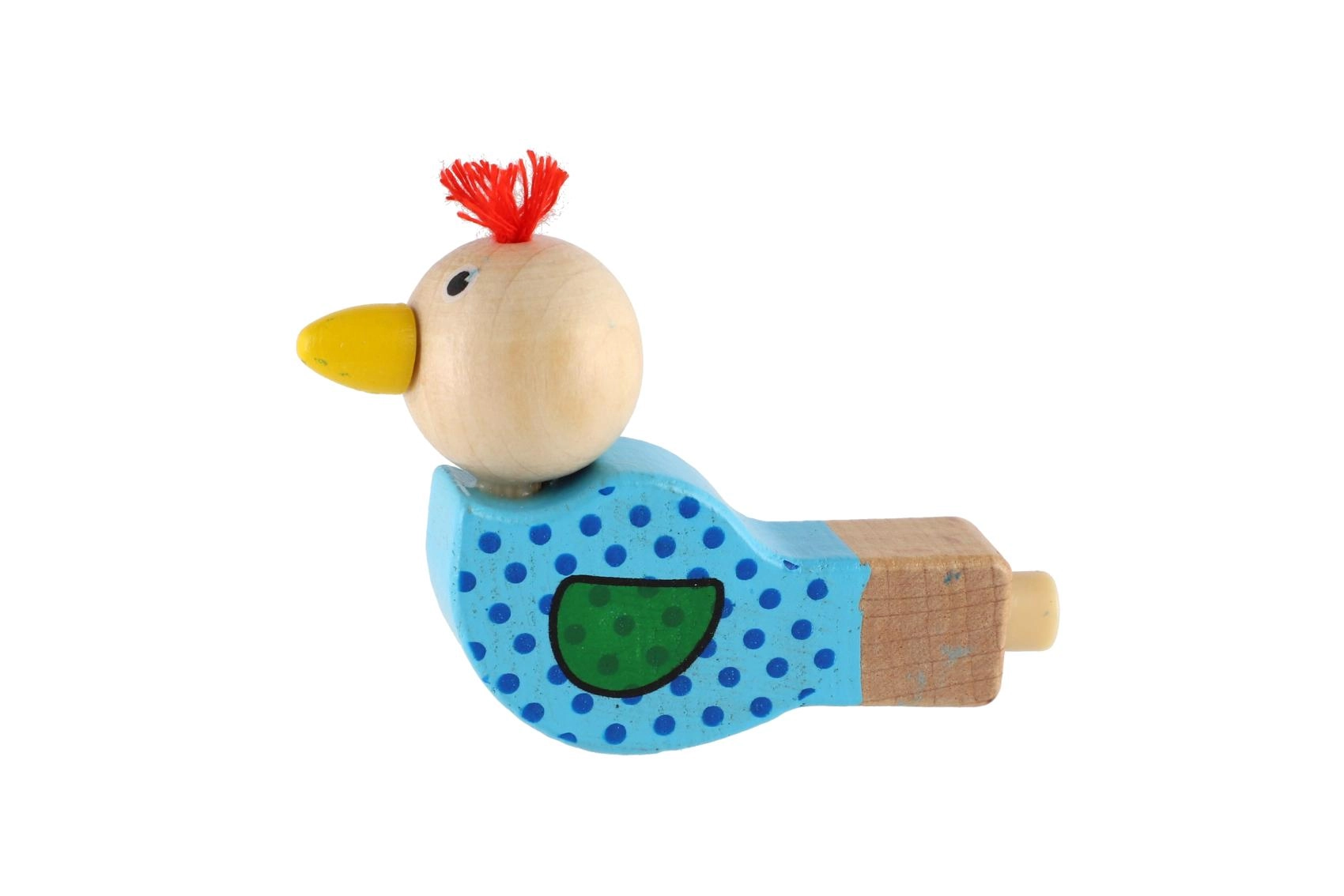 Uroczy drewniany gwizdek w kształcie ptaszka ucieszy każde dziecko. Po dmuchnięciu wydaje przyjemny dźwięk, świetnie leży w dziecięcej dłoni, a dzięki solidnemu wykonaniu z wytrzymałego drewna wytrzyma codzienną zabawę. Wesołe kolory i mały frędzelek jako „czubek” nadają zabawce zabawny design.