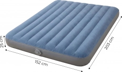 W zestawie znajduje się wbudowana pompka akumulatorowa z baterią litową do wygodnego pompowania i spuszczania powietrza bez dodatkowych akcesoriów – idealna w podróży i w domu. Przyjemna powierzchnia welurowa jest antypoślizgowa i komfortowa w dotyku, a wymiary 203 × 152 × 25 cm zapewniają wystarczająco dużo miejsca dla dwóch dorosłych osób.
