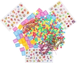 - Plastikowe koraliki, elastyczne gumki, piankowe naklejki