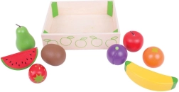 W tej skrzynce znajdziesz różnorodne drewniane owoce, takie jak banany, jabłka, truskawki czy gruszki. To świetna zabawka dla dzieci, która nie tylko bawi, ale także edukuje o znaczeniu zdrowej i zrównoważonej diety. Gra została zaprojektowana do rozwoju umiejętności manualnych, a podczas zabawy dzieci uczą się również, skąd pochodzi ich jedzenie i jak się je przygotowuje.