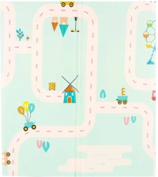 Dzięki wodoodpornej powierzchni wystarczy przetrzeć matę, składana konstrukcja oszczędza miejsce, a dołączona torba transportowa ułatwia przechowywanie i podróżowanie. Idealna do pokoju dziecięcego, salonu i w podróży.
