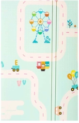 Urocze pandy z jednej strony i motyw drogowy z drugiej rozwijają wyobraźnię, naukę oraz zabawę z autkami i klockami.