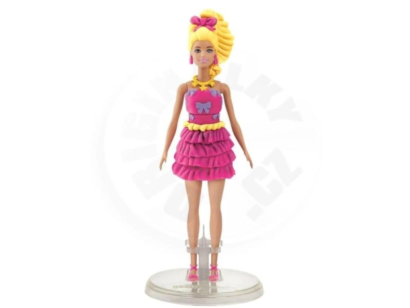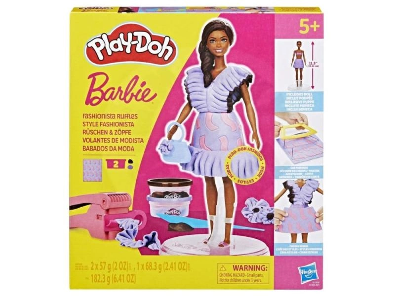 Ten zestaw Play-Doh dla lalki Barbie zawiera wszystko, czego dzieci potrzebują do tworzenia własnych modowych kreacji i fryzur. Wystarczy umieścić lalkę na stojaku, za pomocą wzornika i foremek wykonać sukienki, dodać akcesoria i w kilka chwil lalka stanie się gwiazdą wybiegu. Dzięki dwóm rodzajom foremek na krótkie i długie włosy można wciąż na nowo testować świeże style.