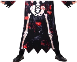 Dziecięcy kostium szkieletora jest idealny na Halloween, karnawał, szkolne przedstawienia i imprezy tematyczne. Czarny płaszcz z nadrukiem kości i efektownymi „postrzępionymi” brzegami tworzy autentyczne wrażenie, a kaptur i maska łatwo się zakładają i zapewniają pewne zakrycie twarzy.