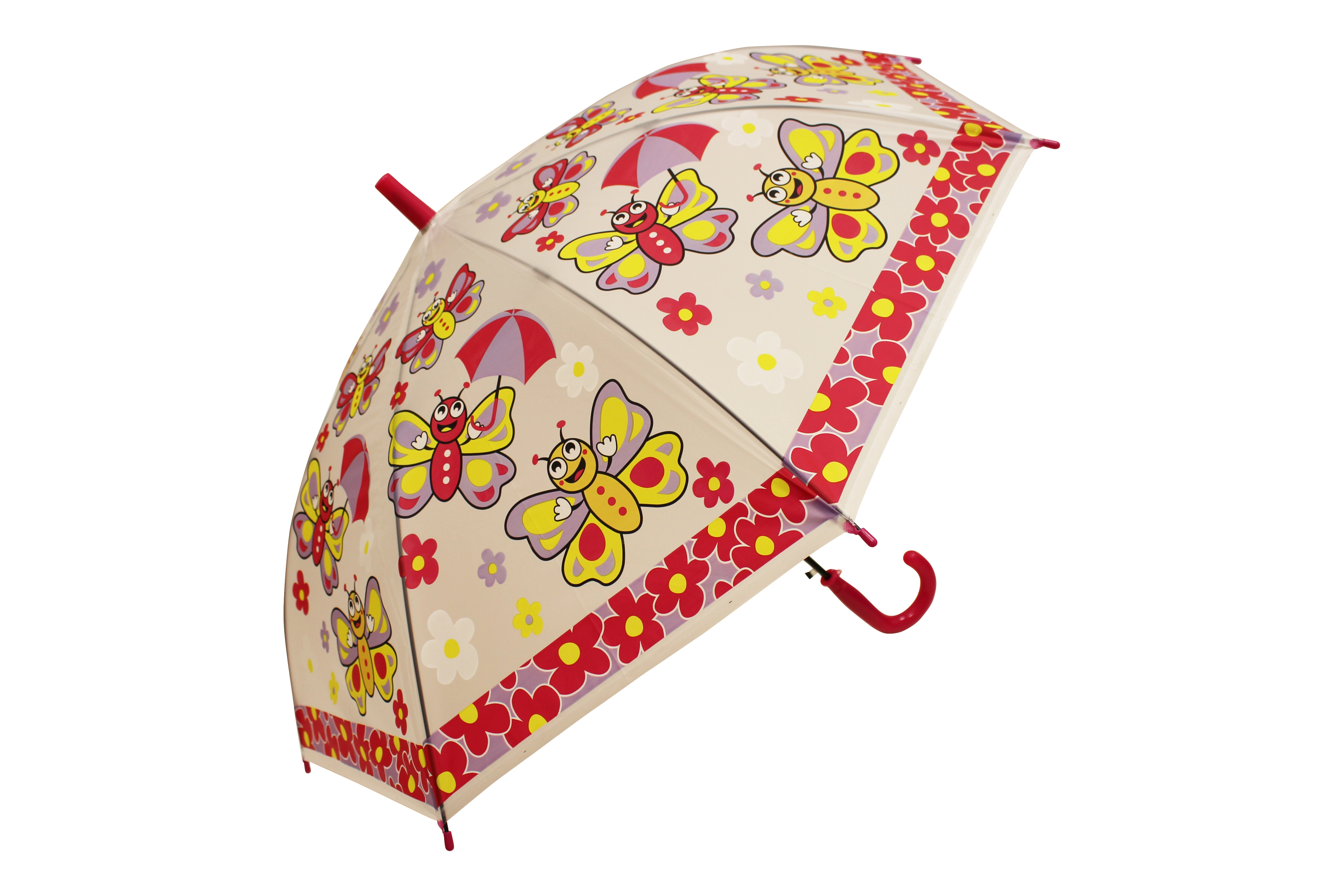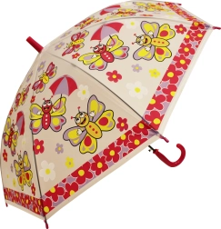 Podaruj dzieciom radość z deszczowych dni dzięki uroczemu parasolowi z motywami ulubionych owadów. Dzięki przezroczystemu tworzywu i kolorowym panelom dzieci dobrze widzą drogę, a kopułowy kształt zapewnia doskonałe osłonięcie. Wytrzymałe druty i ręczne otwieranie gwarantują proste oraz bezpieczne użytkowanie.