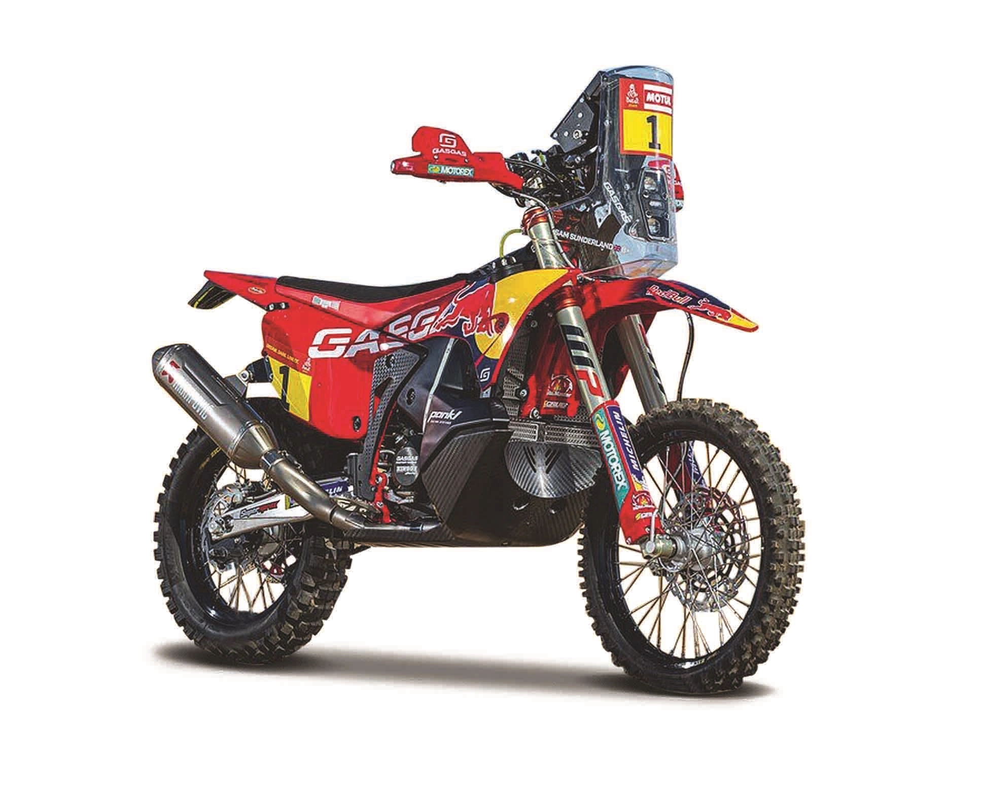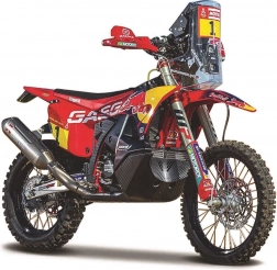 Licencjonowany model motocykla Red Bull KTM Rally GASGAS RX450F – Dakar 2023 marki Bburago zapewnia precyzyjne wykonanie, autentyczne barwy i wyścigowe oklejenie inspirowane słynnym rajdem Dakar. Świetnie uzupełni kolekcję motorsportu i posłuży jako stylowa dekoracja.