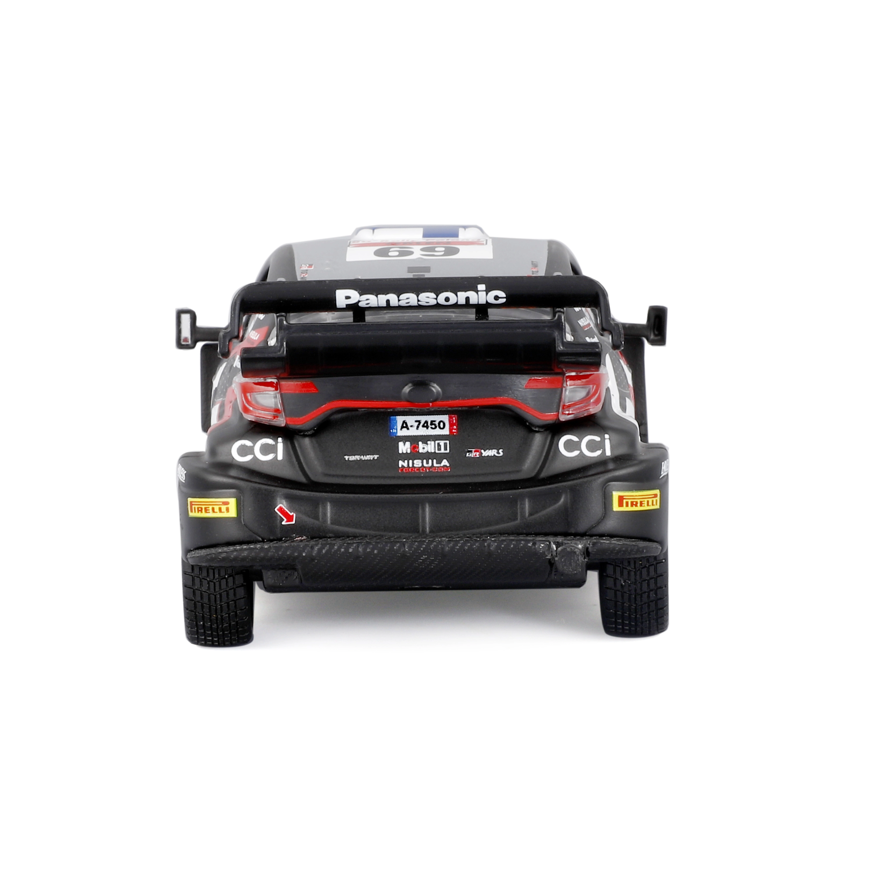 Dokładne nadruki sponsorów, precyzyjne kolory i numer startowy 69 podkreślają realistyczny wygląd specjału GR Yaris Rally1 Hybrid.
