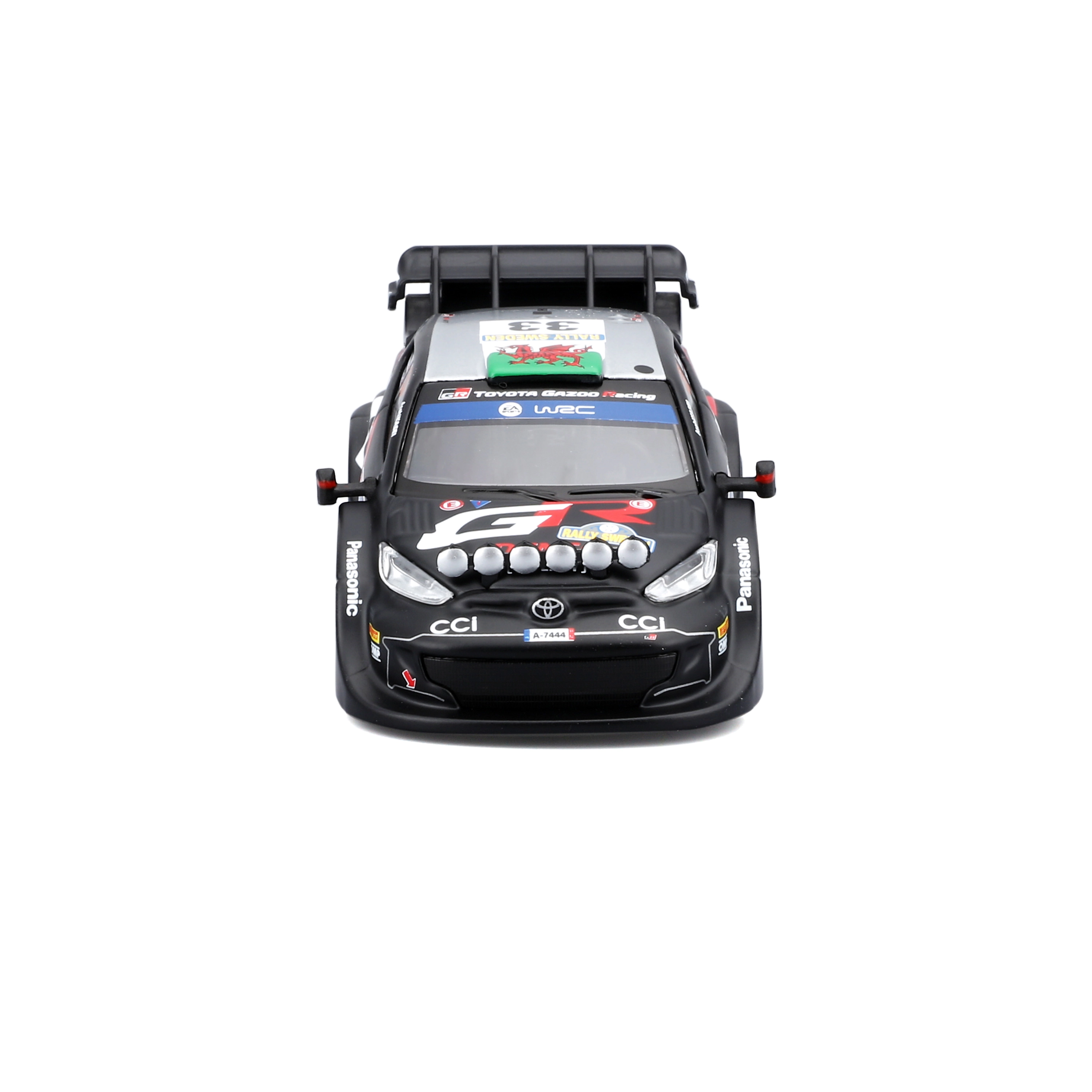 Szczegółowe naklejki, dodatkowe światła i elementy aerodynamiczne wiernie odpowiadają prawdziwemu wyścigowemu specjałowi Toyota GR Yaris Rally1.