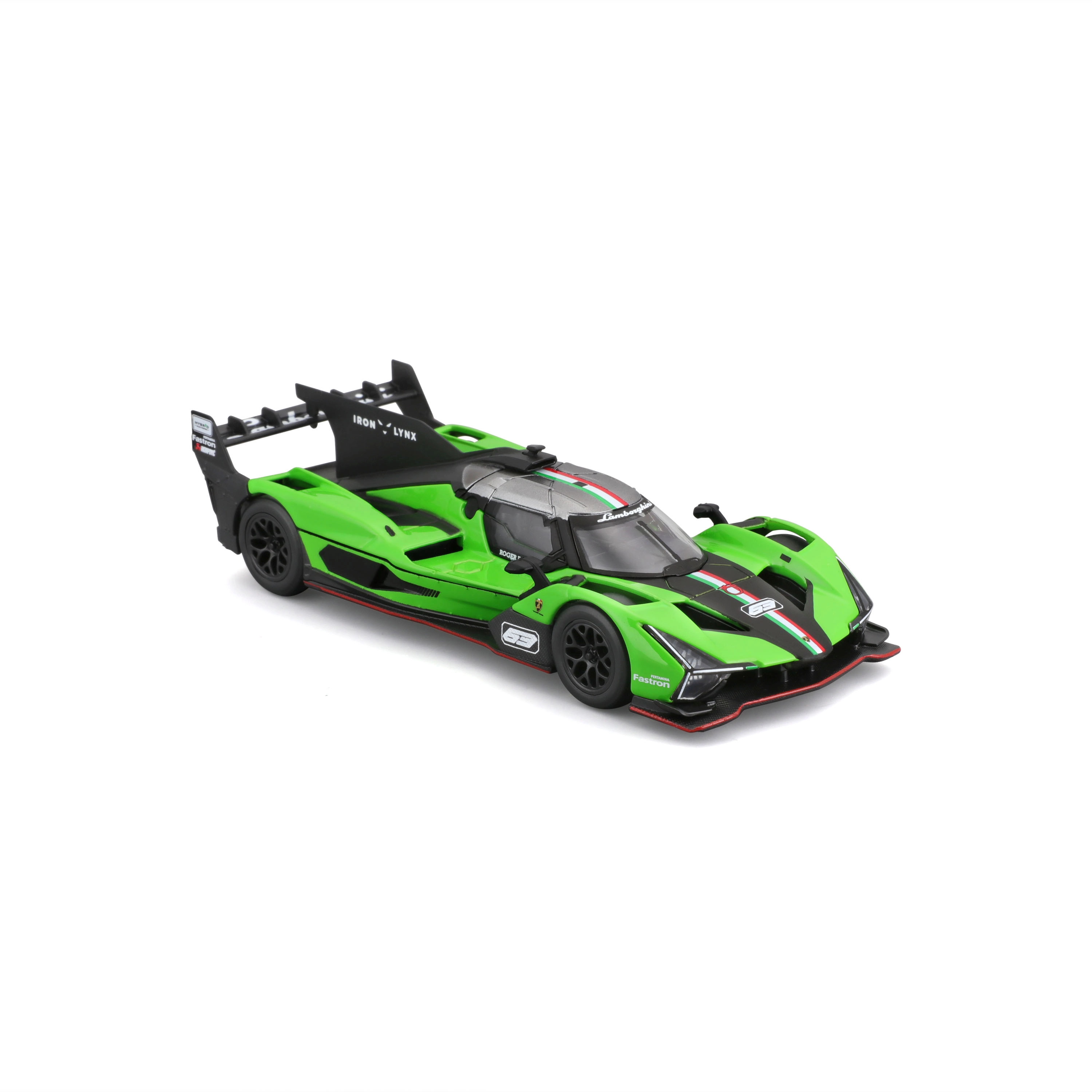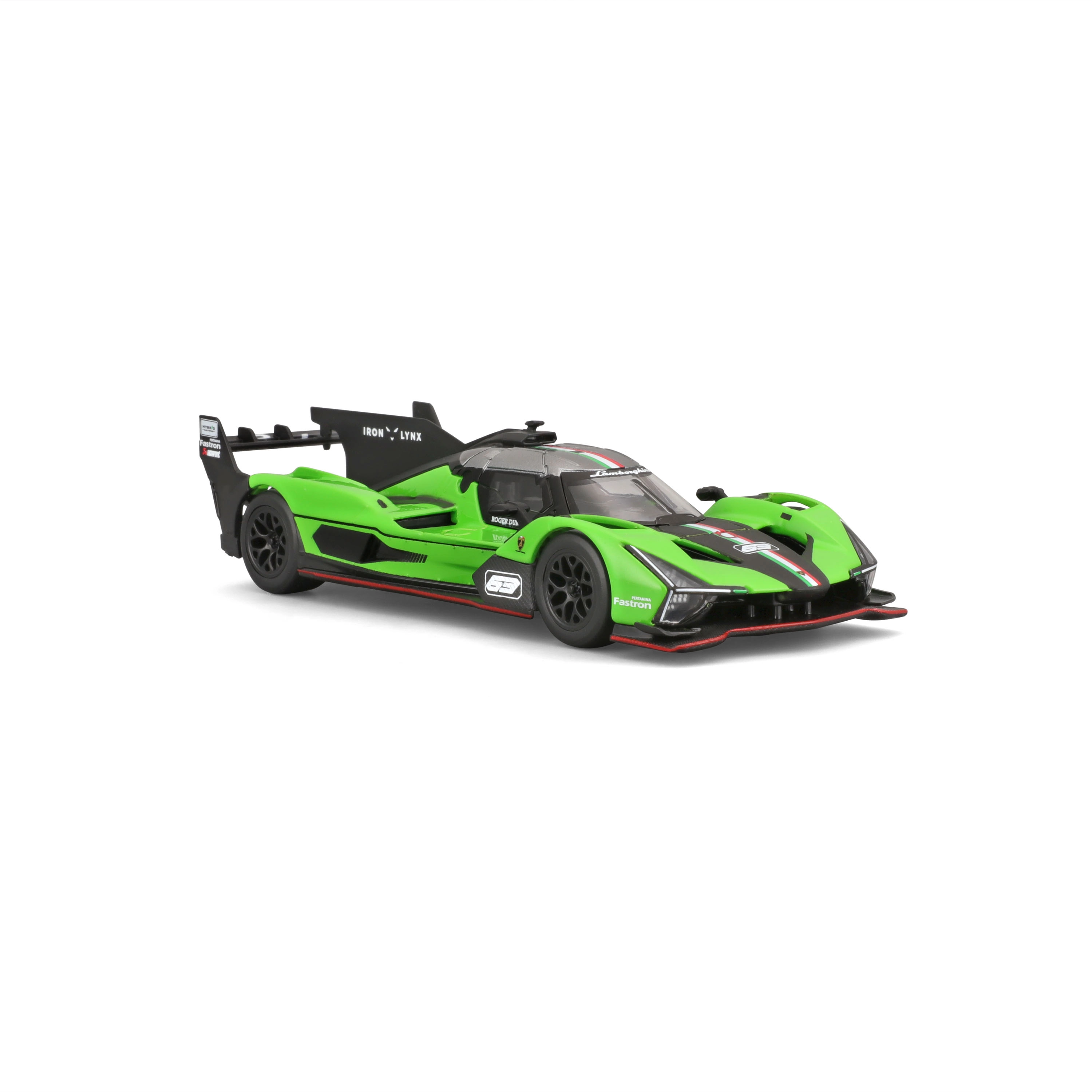Wyraziste skrzydło, dyfuzor i ostre linie nadwozia podkreślają DNA modelu LAMBORGHINI SC63 i zapewniają realistyczny wygląd w skali 1:43.
