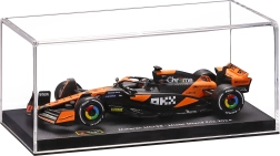 Model dostarczany jest w przezroczystej akrylowej gablocie na eleganckiej podstawie, która chroni przed kurzem i umożliwia bezpieczne przenoszenie. To świetny wybór dla kolekcjonerów i fanów Formuły 1, którzy szukają wysokiej jakości, przystępnego cenowo modelu die-cast z dużą dbałością o detale.