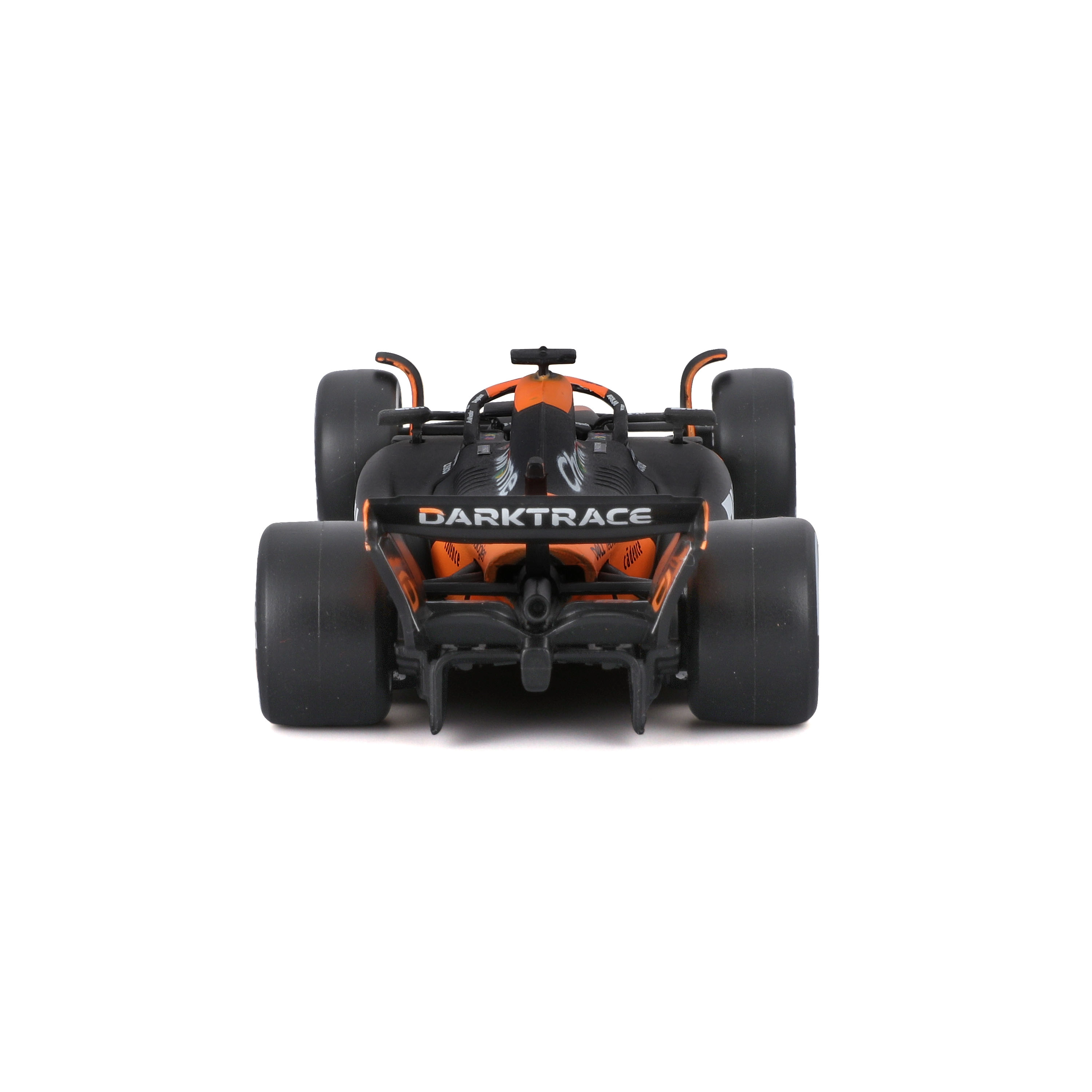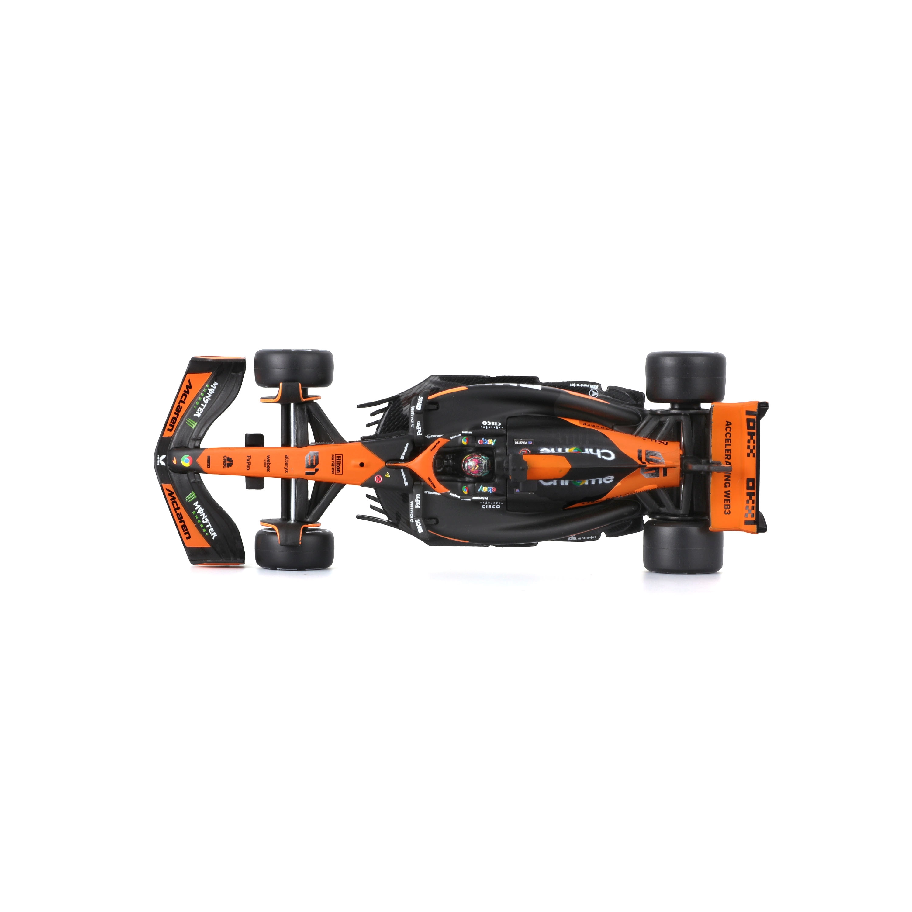 Ikoniczne połączenie pomarańczowego i czarnego z logotypami zespołu oraz wyścigowymi oponami typu slick zachwyci każdego fana F1.
