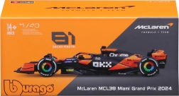 Ten szczegółowy model McLaren MCL38 – Miami Grand Prix 2024 oddaje nowoczesną aerodynamikę F1 w skali 1:43. Metalowa karoseria realistycznie się błyszczy, a precyzyjne nadruki sponsorów i kolorowe akcenty kół dopełniają wierny wygląd prawdziwego bolidu.