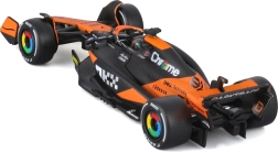 Wierne pomarańczowo‑czarne malowanie, dokładne logotypy zespołu oraz kolorowe piasty kół podkreślają wyścigowy charakter prawdziwego auta F1.