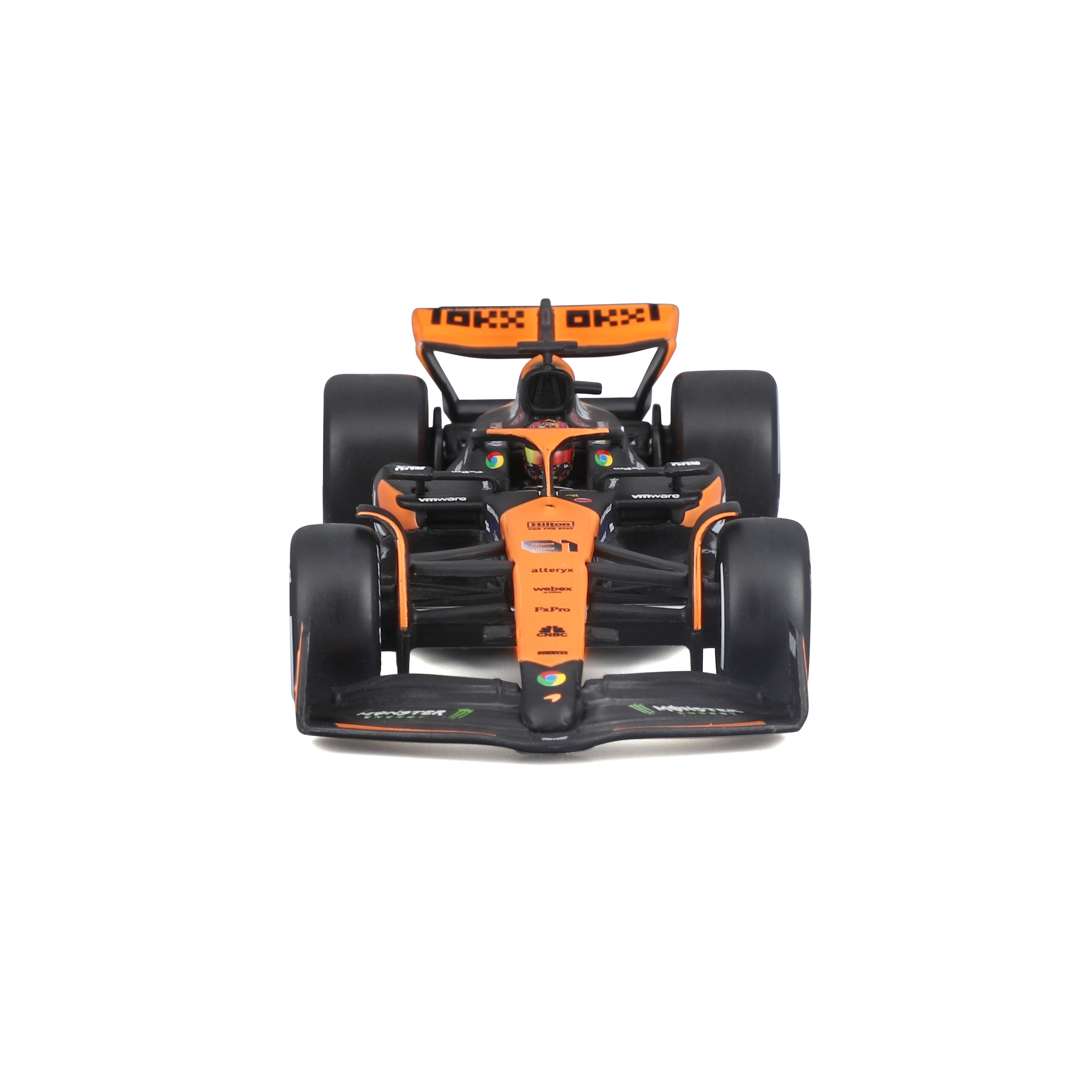 Dzięki figurce kierowcy Oscara Piastriego w kokpicie model wygląda dynamicznie nawet podczas statycznej ekspozycji. Przezroczysty display box na podstawce chroni przed kurzem i pozwala oglądać detale ze wszystkich stron – idealny na półkę, do biura lub pokoju dziecięcego każdego fana.