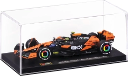 Model umieszczony jest w transparentnej gablocie na podstawce, która chroni przed kurzem, a jednocześnie pozwala na atrakcyjną ekspozycję. Gumowe slicki, realistyczne skrzydła i precyzyjne nadruki podkreślają kolekcjonerską wartość. Świetnie uzupełni kolekcję zespołów i edycji specjalnych z sezonu wyścigowego 2024.
