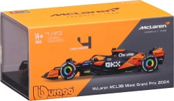 Zbieraj prędkość i styl z oficjalnym modelem McLaren MCL38 (sezon 2024) w skali 1:43 od Bburago. Ten szczegółowo wykonany samochód z numerem 4 – Lando Norris oferuje realistyczne odwzorowanie, autentyczne barwy zespołu oraz figurkę kierowcy w kokpicie. Idealny dla kolekcjonerów i fanów F1, dostarczany w ochronnej gablocie/pudełku do stylowej ekspozycji.