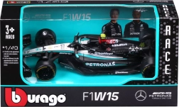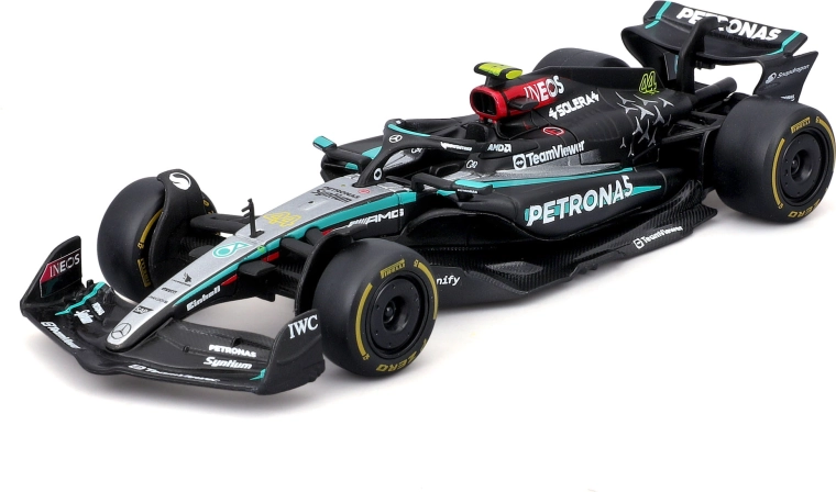 Odkryj precyzyjną miniaturę wyścigowej maszyny Mercedes‑AMG Petronas F1 Team w edycji W15 Performance (2024). Model marki Bburago wiernie oddaje kształty aerodynamiczne, logotypy sponsorów oraz ikoniczne czarno‑turkusowe malowanie. Idealny do kolekcji, biura lub pokoju każdego miłośnika prędkości.