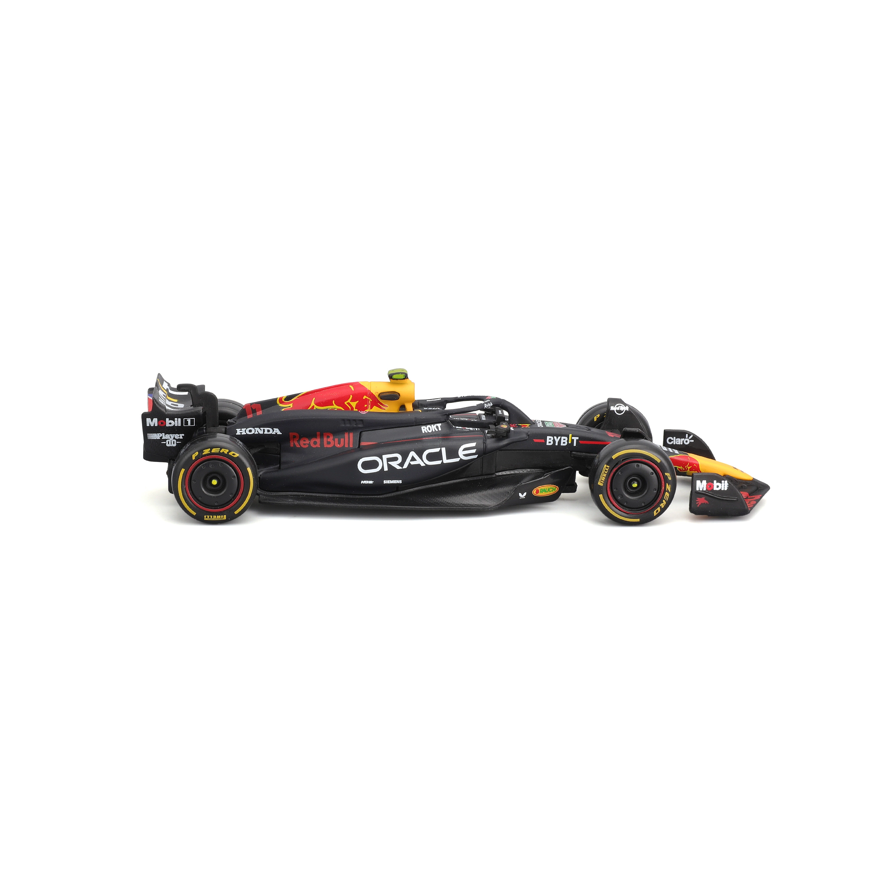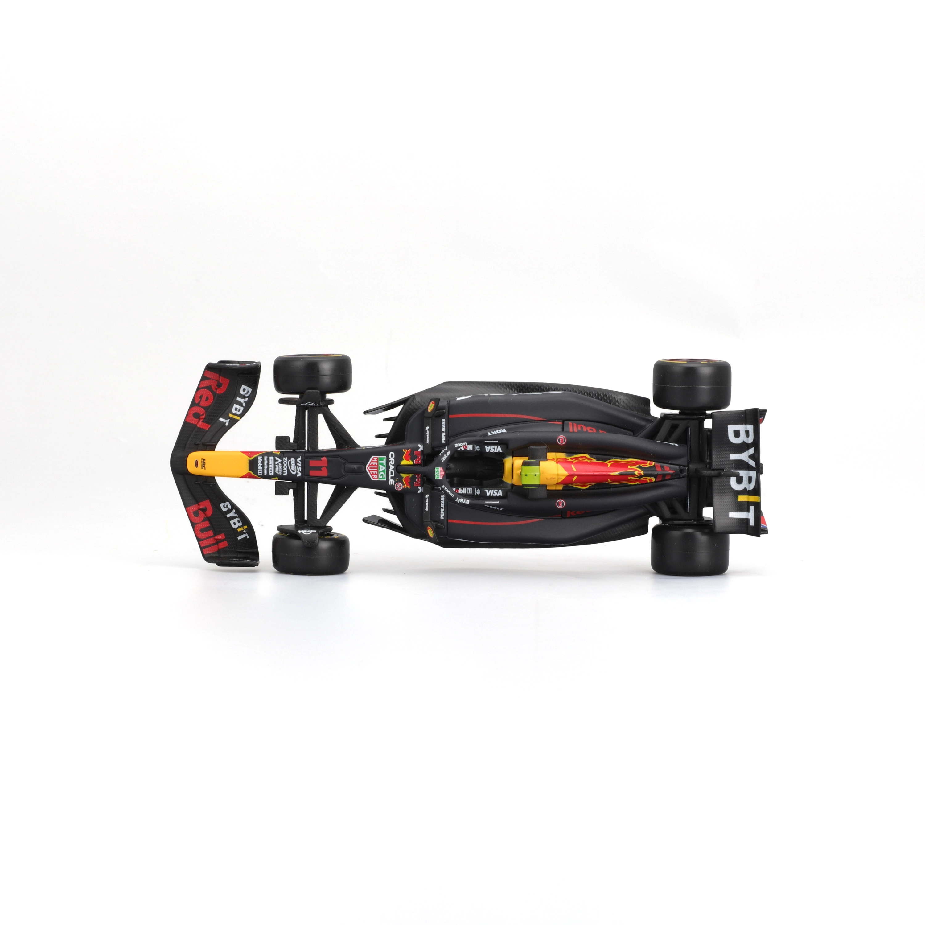 Dokładna grafika zespołu RB20 z logotypami sponsorów i numerem 11 SERGIO PÉREZ nadaje modelowi profesjonalny wyścigowy wygląd.