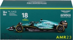 Ten precyzyjnie wykonany model Aston Martin AMR23 w skali 1:43 wiernie oddaje kształty bolidu z sezonu 2023 z numerem 18, którym jeździ Lance Stroll. Wyróżnia się autentycznym lakierem w wyścigowej zieleni, szczegółowymi logotypami sponsorów oraz dokładnym odwzorowaniem skrzydeł, dyfuzora i pałąka ochronnego halo.