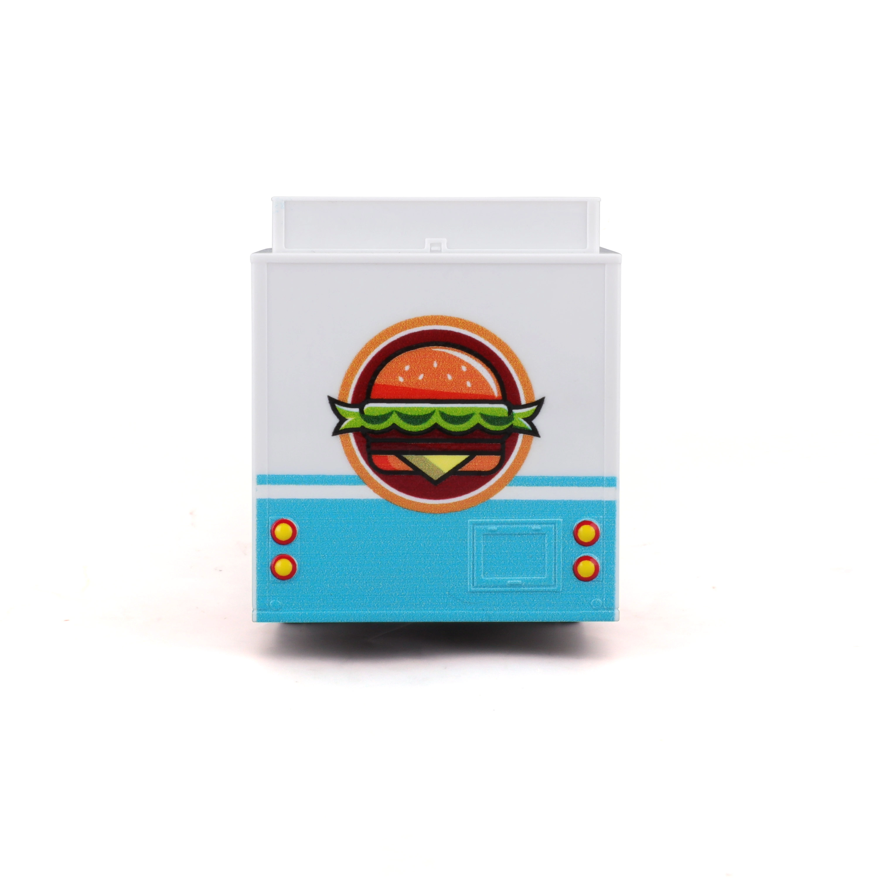 Nadruk menu, grafika burgera i formowane światła nadają truckowi autentyczny wygląd, który od razu wciąga dzieci do zabawy.