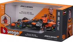 Ten wysoko detaliczny model wyścigowego bolidu McLaren MCL38 oddaje aktualny wygląd sezonu z logotypami sponsorów, precyzyjną aerodynamiką oraz wierną kombinacją kolorów pomarańczowego i czarnego. Dzięki wysokiej jakości lakierowaniu i delikatnym nadrukom sprawia wrażenie miniatury prawdziwego auta gotowego do startu.
