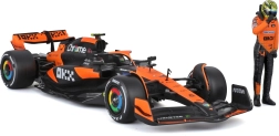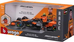 Kolekcjonerski model Bburago w skali 1:24 wiernie odwzorowuje bolid McLaren MCL38 z sezonu 2024 z numerem 4 (Lando Norris). Oferuje detalne nadruki sponsorów, aerodynamiczne skrzydła, realistyczne opony typu slick oraz figurkę kierowcy dla efektownej prezentacji w gablocie.