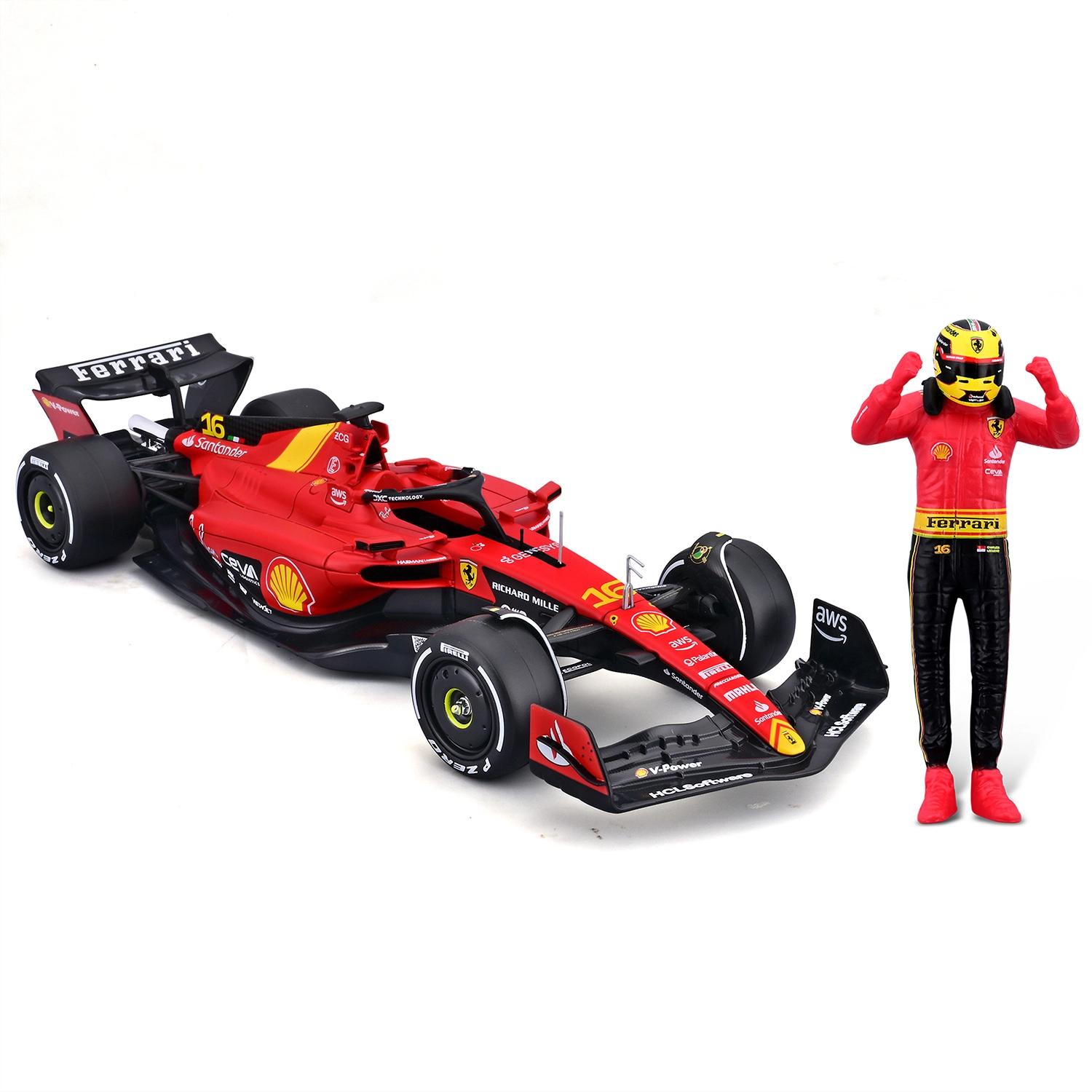 W opakowaniu znajduje się stylowa figurka pilota dopasowana do bolidu – idealna do dynamicznych aranżacji ekspozycyjnych.