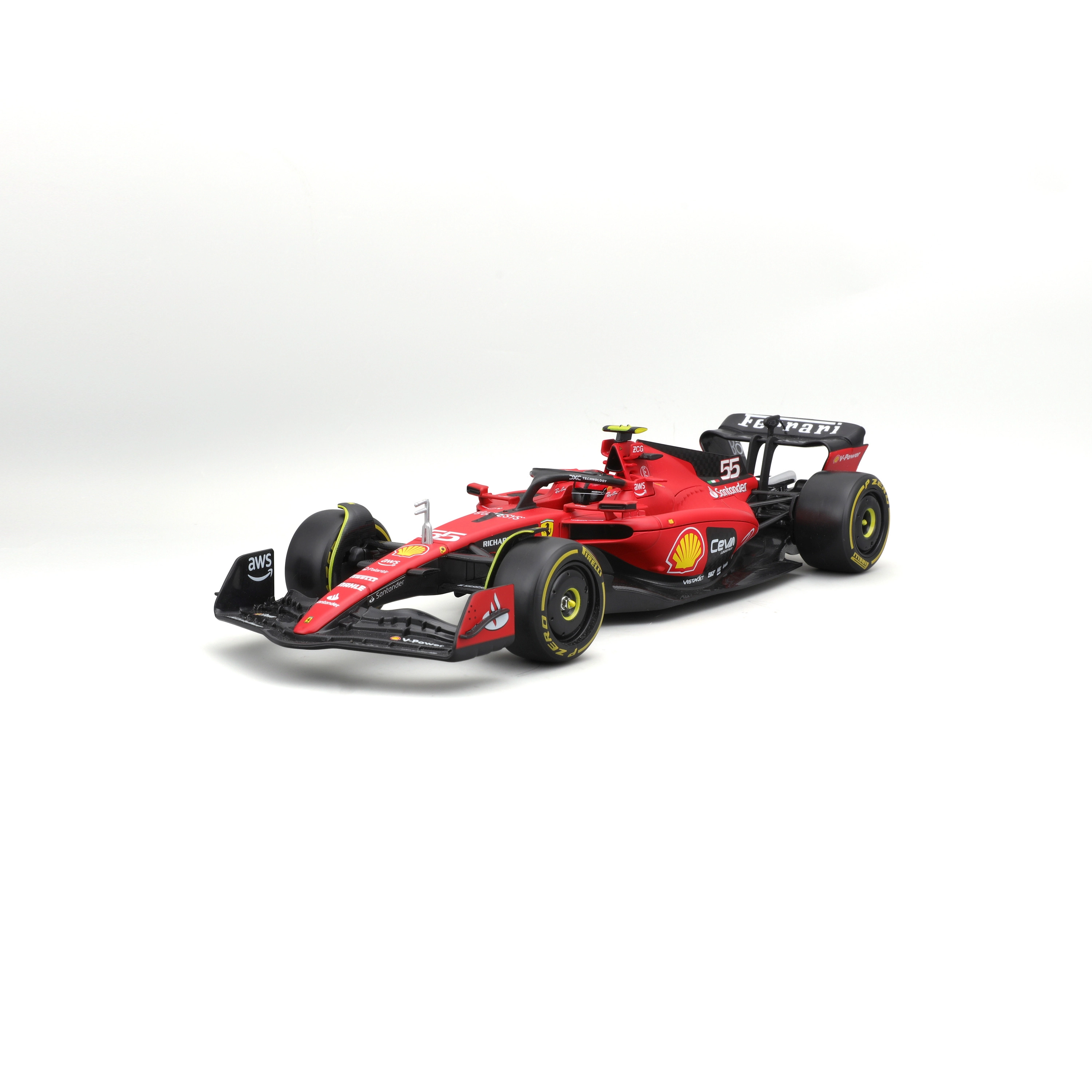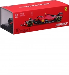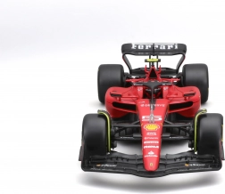 Precyzyjne elementy aerodynamiczne, halo, skrzydła oraz realistyczne opony slick z detalicznym nadrukiem wiernie odwzorowują prawdziwy bolid FERRARI SF23.