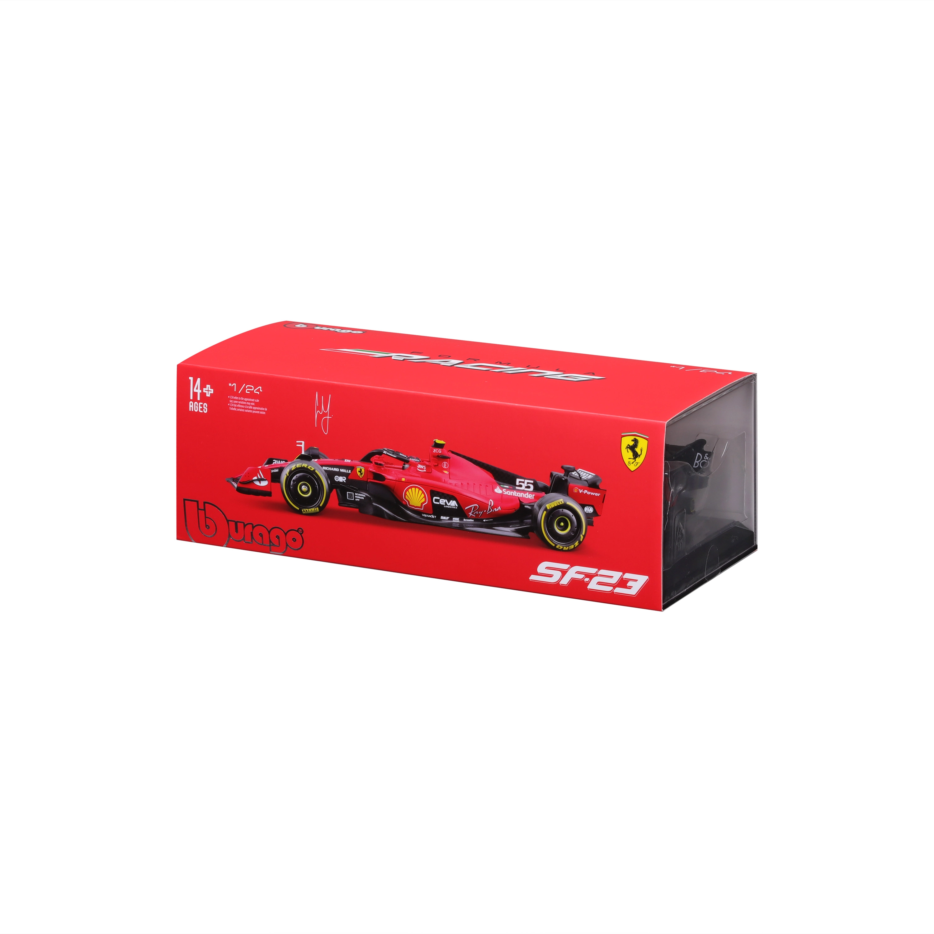 Model wykonano z naciskiem na realistyczne proporcje i drobne detale, w tym opony slick, wyścigowe malowanie i numer startowy 55 kierowcy Carlosa Sainza. W zestawie znajduje się solidny ochronny boks (hard case), który chroni przed kurzem i ułatwia ekspozycję na półce lub w gablocie.