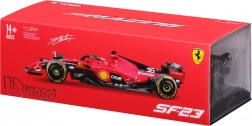 Ten precyzyjnie wykonany model Ferrari SF-23 z sezonu 2023 oddaje charakterystyczne elementy aerodynamiczne nowoczesnej formuły: przednie i tylne skrzydło, ochronę kokpitu halo, realistyczne opony typu slick oraz autentyczne zespołowe i sponsorskie oklejenie. Dzięki skali 1:24 doskonale widać proporcje i subtelne detale nadwozia.