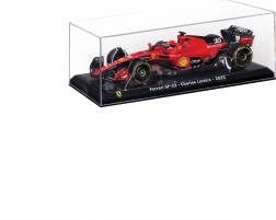 Model jest umieszczony w hard case witrynie z podstawką i opisem „Ferrari SF-23 – Charles Leclerc – 2023”, więc jest gotowy do natychmiastowej ekspozycji na półce lub w gablocie bez potrzeby dodatkowej pielęgnacji. Idealny prezent dla fanów F1, kolekcjonerów modeli i sympatyków zespołu Scuderia Ferrari.