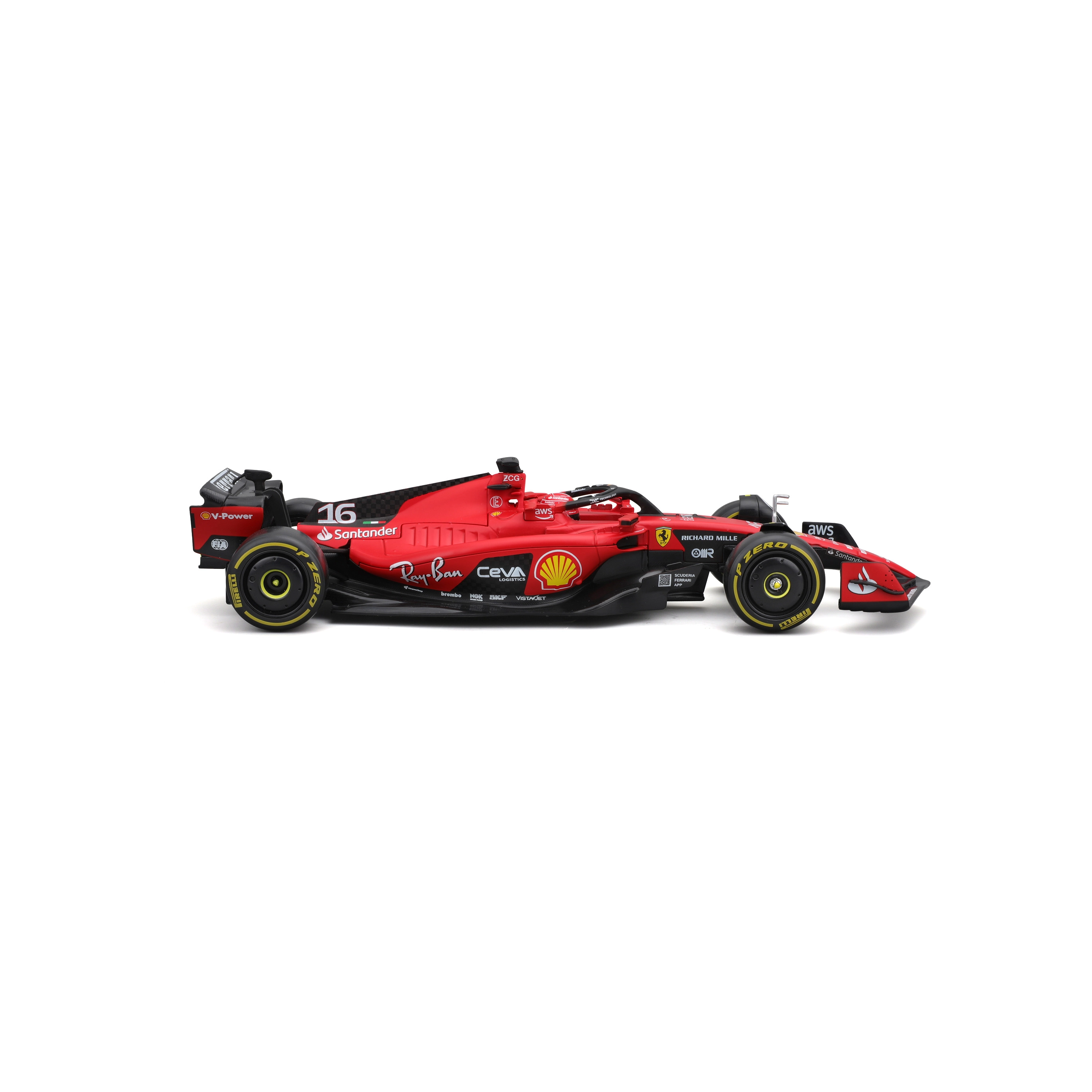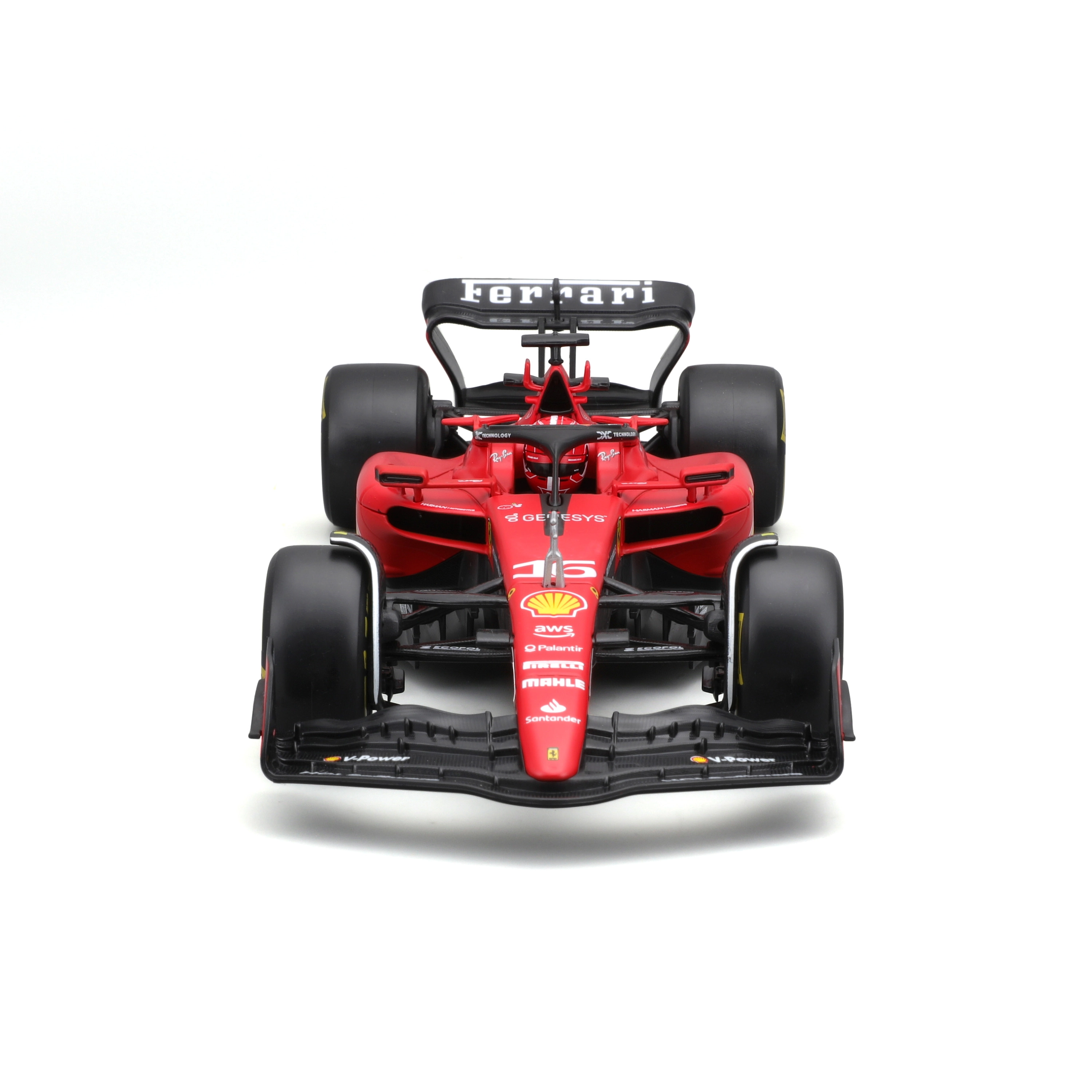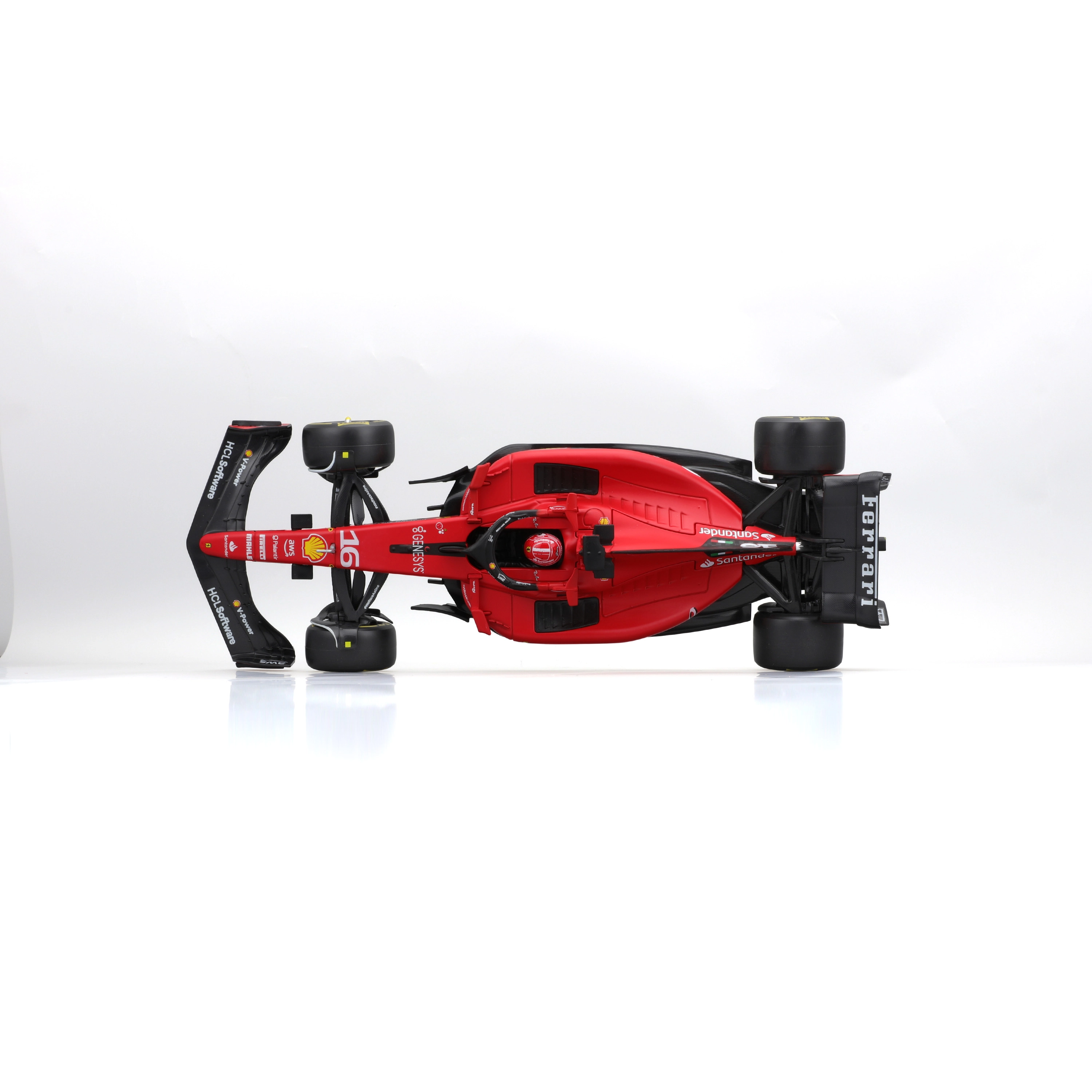Wierne kształty nadwozia, aerodynamiczne skrzydła, halo oraz precyzyjne nadruki sponsorskie z numerem 16 dla fanów Charlesa Leclerca.