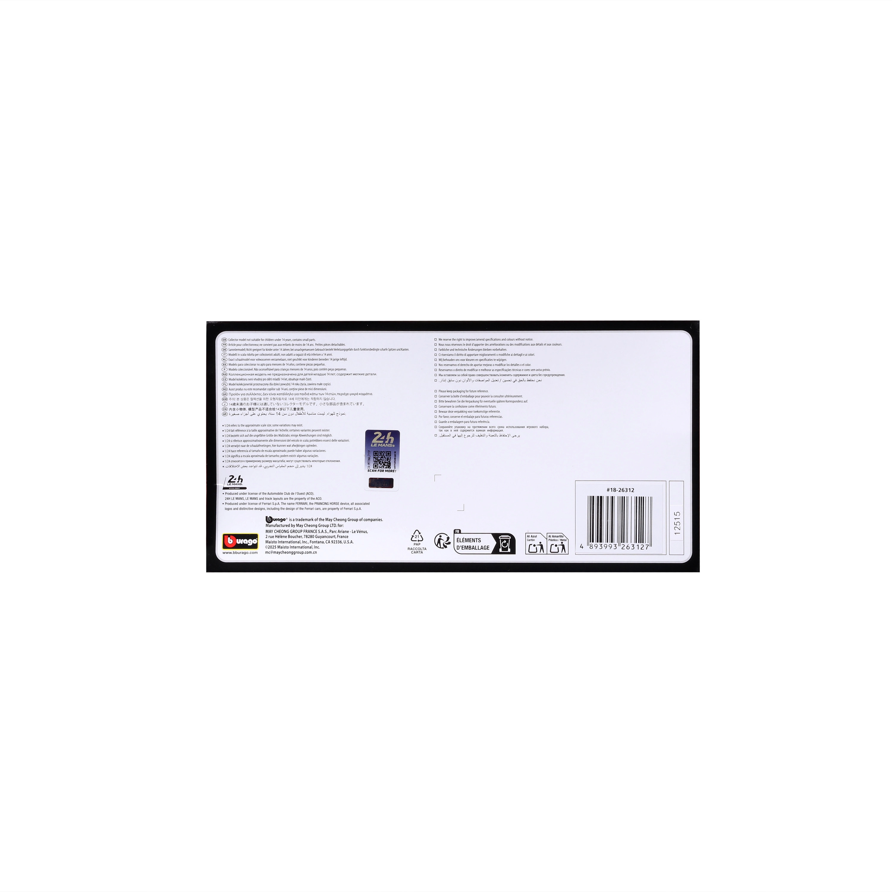 Ten licencjonowany model Ferrari 499P oferuje autentyczne proporcje wyścigowe, wierne elementy aerodynamiczne oraz wysokiej jakości nadruki sponsorów. Dzięki połączeniu metalu i precyzyjnie formowanych elementów plastikowych wygląda wyjątkowo realistycznie i świetnie uzupełni każdą kolekcję.
