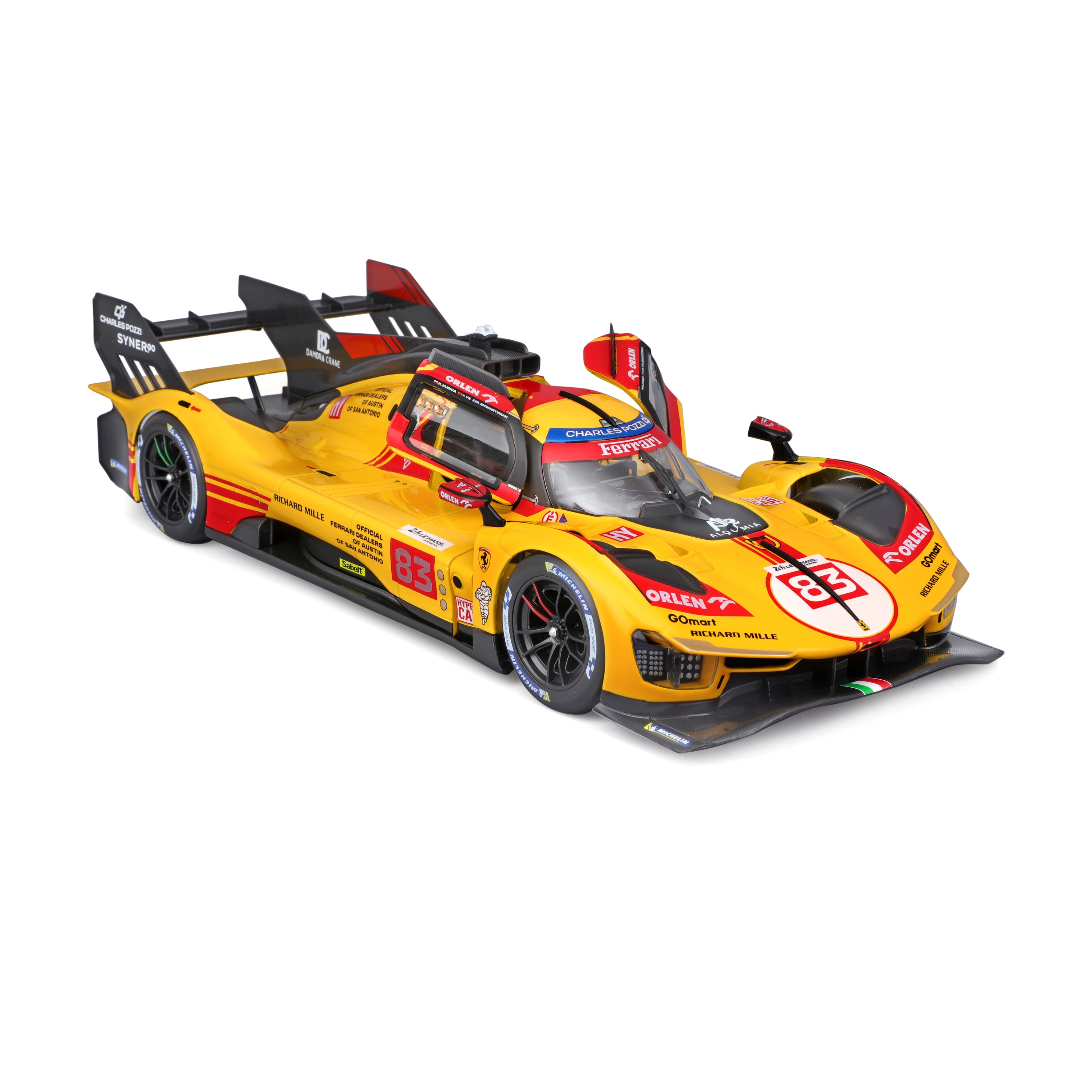 Odkryj doskonale wykonany model Ferrari 499P w ikonicznym żółto‑czerwonym malowaniu ze startowym numerem 83 ze słynnego wyścigu 24H Le Mans 2024. Metalowa konstrukcja z precyzyjną obróbką powierzchni, wiernie odwzorowana aerodynamika oraz realistyczne tarcze hamulcowe podkreślają autentyczny wygląd wyścigowego specjalu.