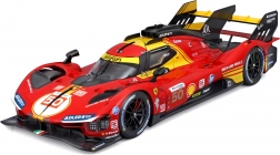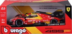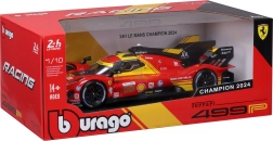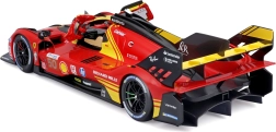 Ten szczegółowy model od Bburago to autentyczna replika prototypu FERRARI 499P w skali 1:18, który triumfował w wyścigu 24H Le Mans 2024. Czerwone malowanie z żółtymi akcentami, starannie nadrukowane naklejki oraz realistyczne proporcje podkreślają wyścigowy charakter auta.