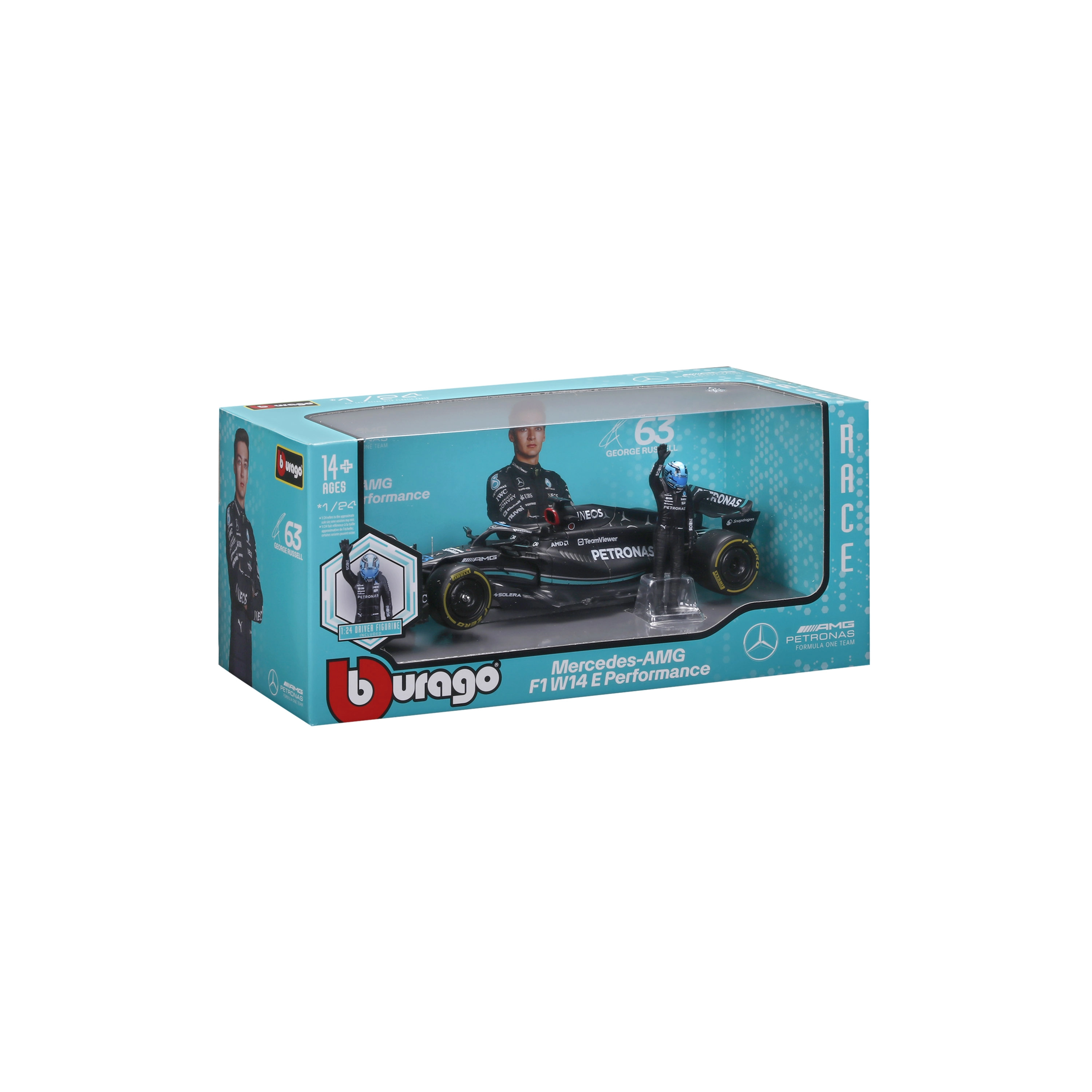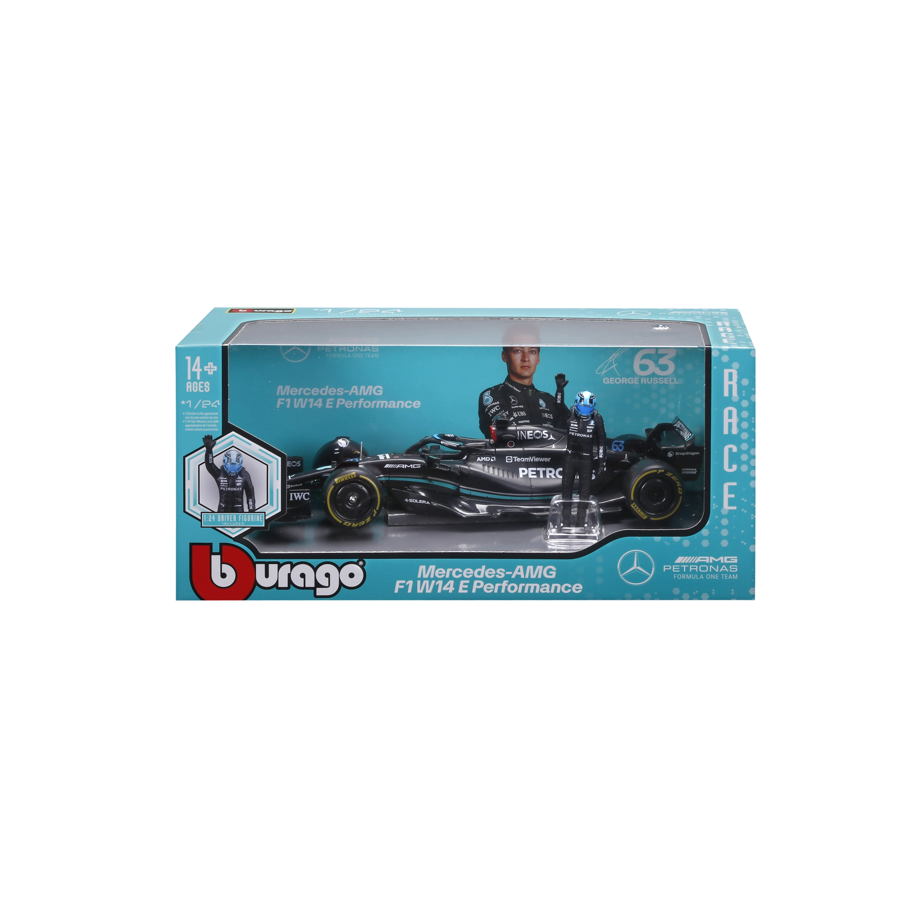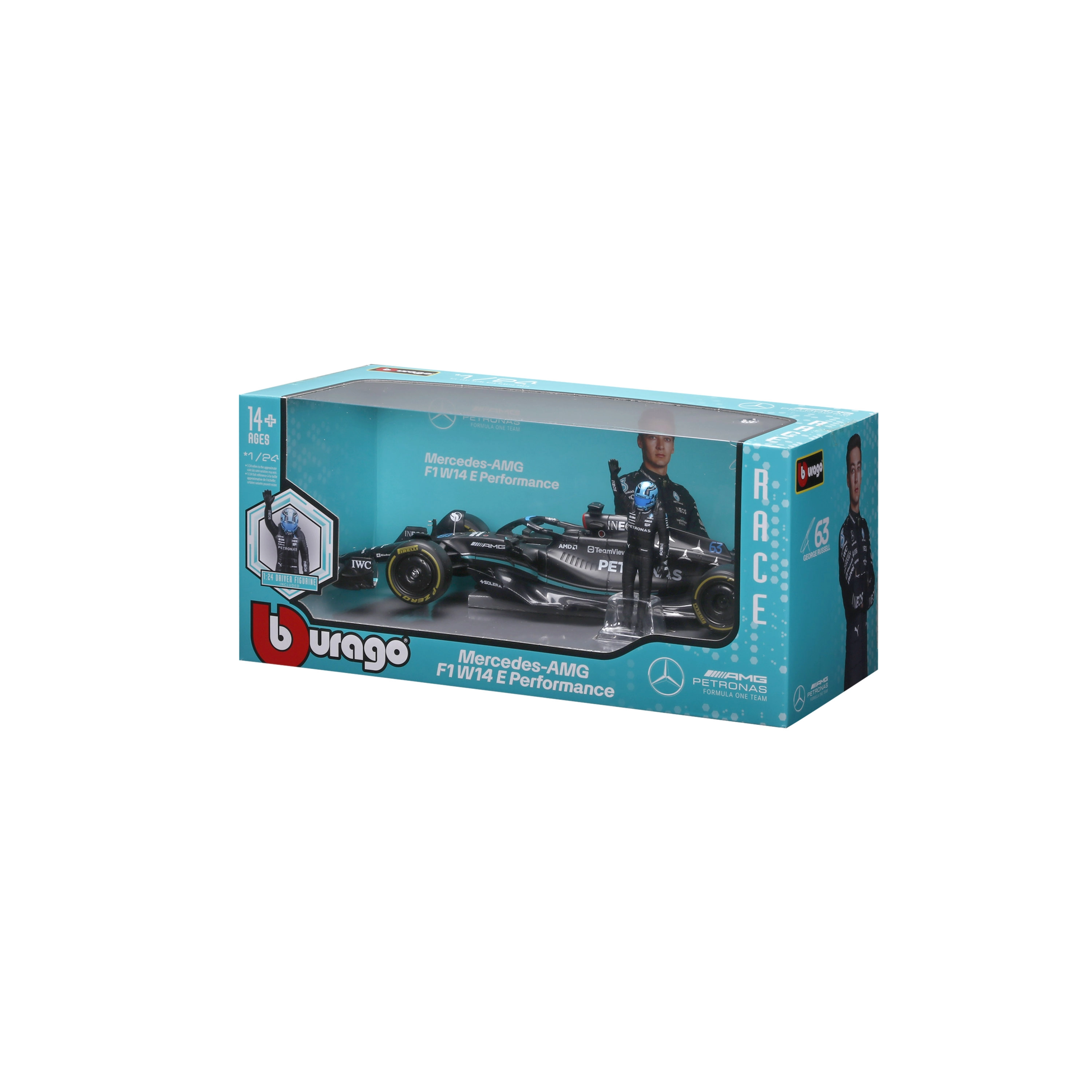 W komplecie dekoracyjna figurka kierowcy George’a Russella oraz wysokiej jakości nadruki malowania ze sponsorami, podkreślające wierność oryginałowi. Model idealny do ekspozycji, gabloty oraz jako prezent dla fanów F1.