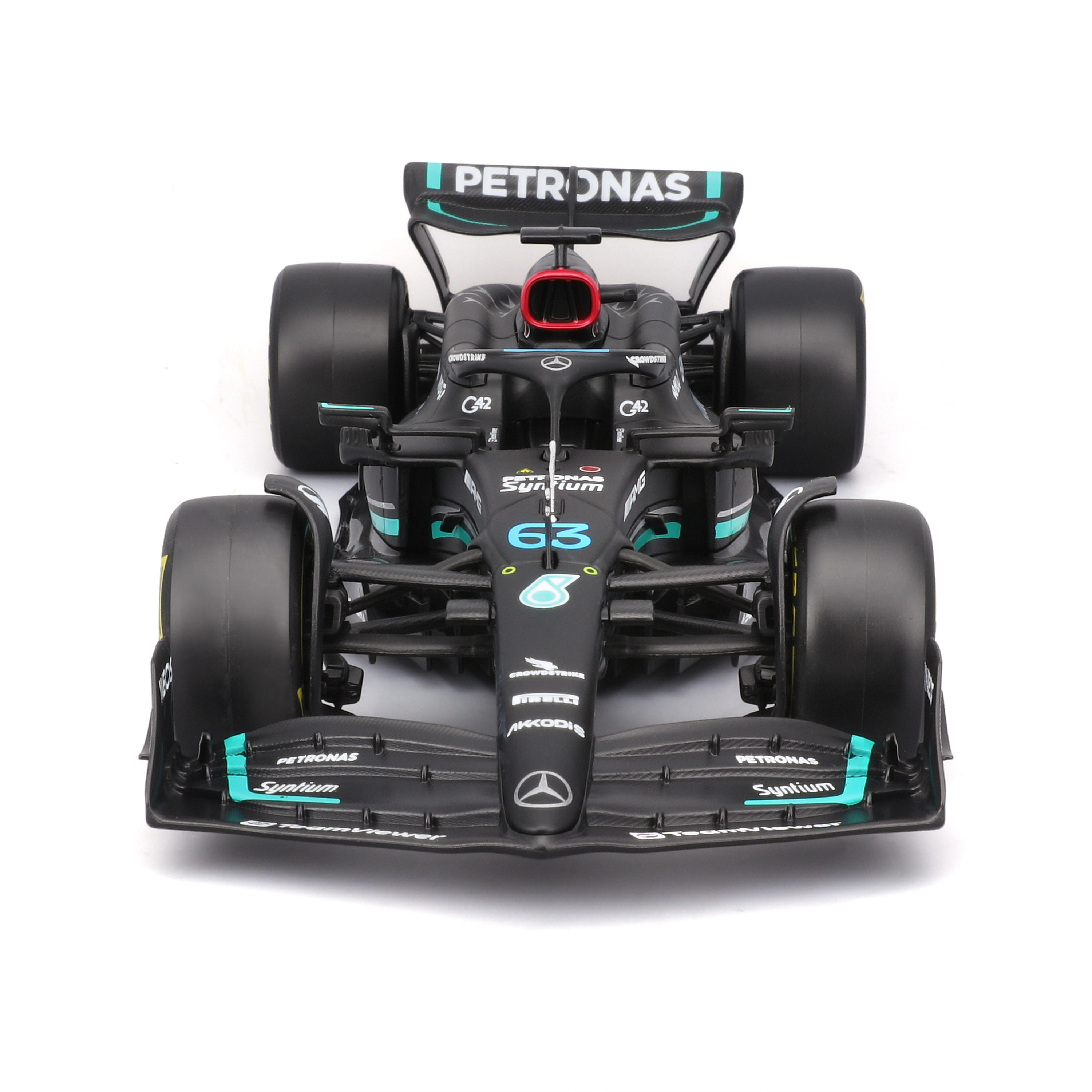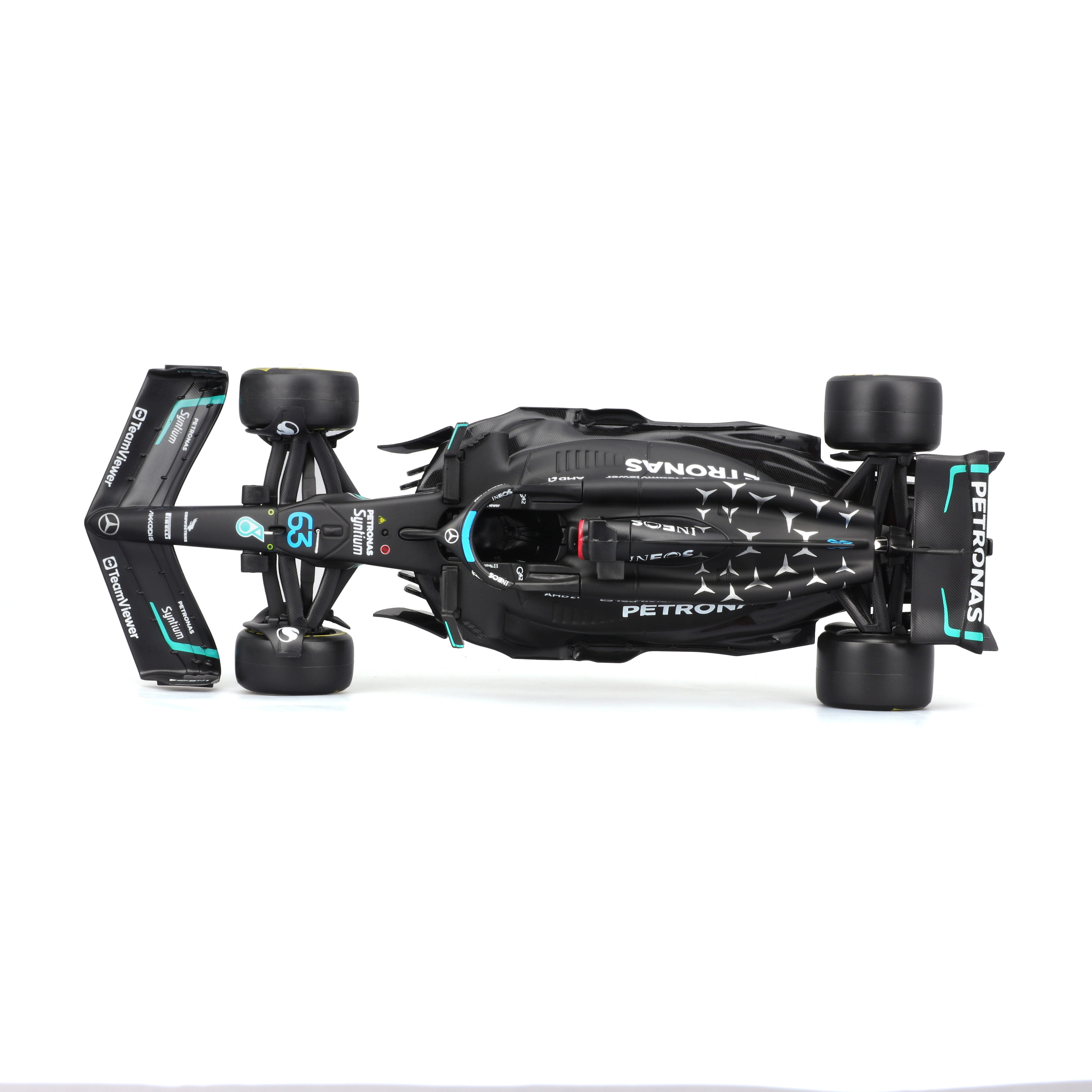 Realistyczna aerodynamika, precyzyjny kształt skrzydeł oraz wysokiej jakości nadruki sponsorów wiernie odtwarzają prawdziwy jednokadłub W14 E.