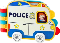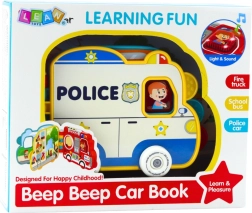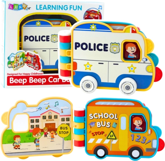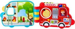 Ta interaktywna książeczka–autko wprowadza dzieci w świat pracy służb ratunkowych i codziennych sytuacji w formie zabawy. Dostępna w motywach policji, straży pożarnej i autobusu szkolnego, oferuje obrotową strażacką nasadkę węża, wysuwaną drabinę, kręcące się koła oraz różne przyciski. Po naciśnięciu przycisku kierowcy aktywują się 4 tryby: efekt, dialog, dodatkowy dialog i muzyka.