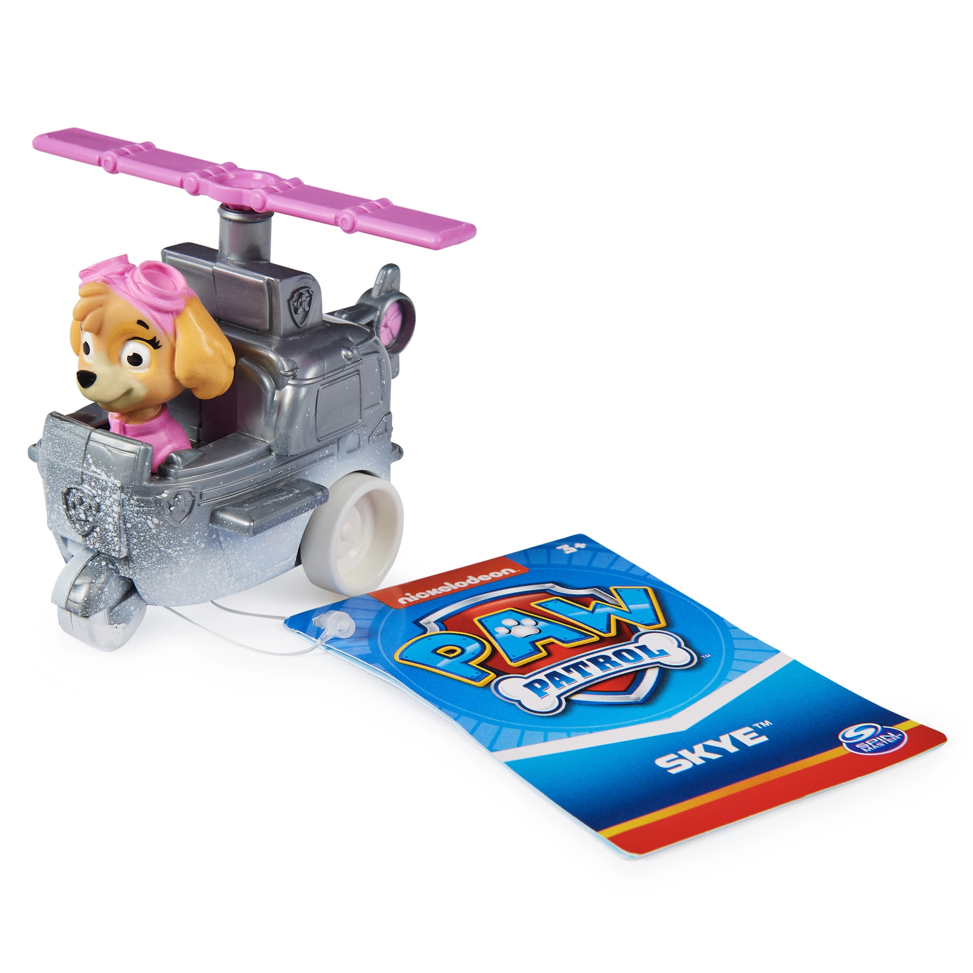 Wyrusz na akcję ratunkową ze Skye w jej kultowym srebrno‑różowym śnieżnym helikopterze. Detale z efektem „śniegu” nadają pojazdowi zimowy klimat i pobudzają dziecięcą wyobraźnię. Dzięki wytrzymałemu wykonaniu i rozmiarowi 8 cm jest idealny w podróży i do dziecięcego pokoju.