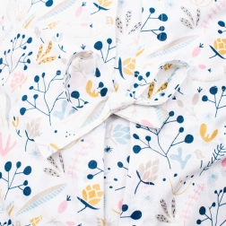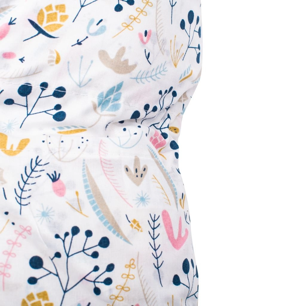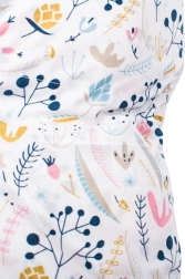 Materiały są łagodne dla skóry – bez formaldehydów i drażniących substancji, nie farbują i nie tracą koloru. Bez guzików i twardych elementów, aby nic nie uciskało i nie stwarzało ryzyka urazu. Idealny do łóżeczka, do karmienia i do wózka.
