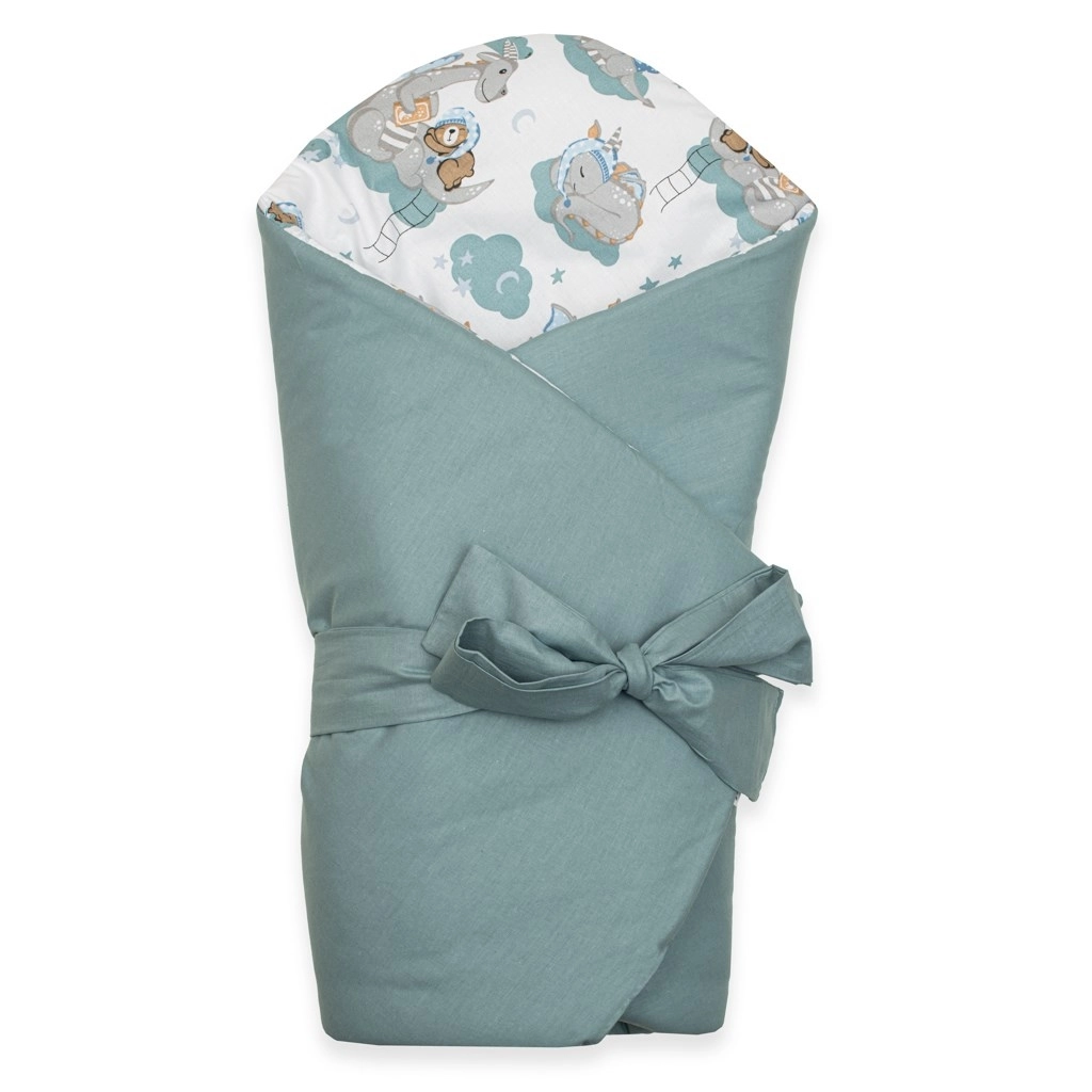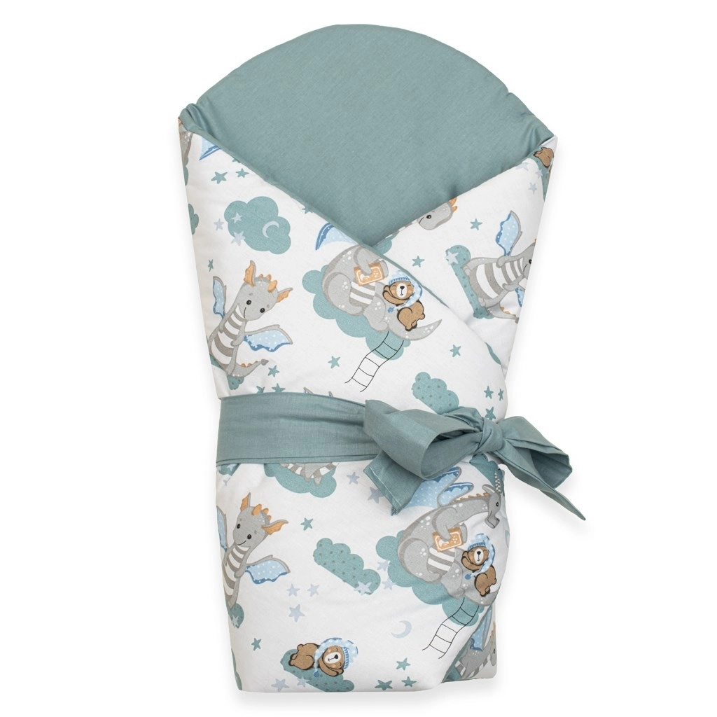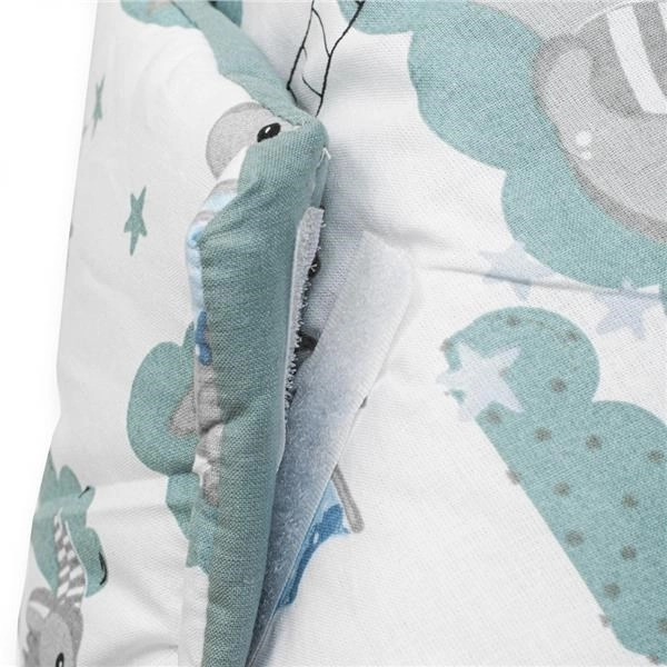 - Dwustronny design: elegancka, jednolita strona i wesoły nadruk ze zwierzątkami i chmurkami.