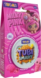 Inteligentna plastelina Tubi Smart Milky Pink to miękka i elastyczna masa sensoryczna z białymi drobinkami, która się rozciąga, trzaska, odskakuje i podskakuje. Świetna do kreatywnej i relaksacyjnej zabawy, rozwija motorykę małą i koordynację ręka–oko. Zamykany kubeczek utrzymuje masę świeżą przez długi czas.