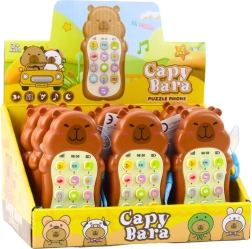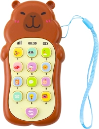 Uroczy dziecięcy telefon w kształcie kapibary łączy efekty świetlne i dźwiękowe, kolorowe przyciski oraz wygodny pasek na nadgarstek. Wspiera rozwój sensoryczny, koordynację ręka–oko oraz naturalne poznawanie świata dzięki melodiom, odgłosom zwierzątek i „rozmowom przez telefon”. Gładka powierzchnia, ergonomiczny kształt i lekka konstrukcja są idealne dla małych dziecięcych rąk.