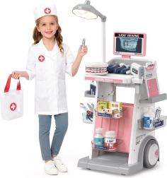 Odkryj kreatywną zabawę w dentystę z tym mobilnym wózkiem dla małych lekarzy. Oferuje 26 elementów akcesoriów, świecącą lampę, model szczęki oraz ekran RTG dla realistycznej, a zarazem bezpiecznej zabawy, która rozwija małą motorykę, wyobraźnię i zdrowe nawyki dbania o zęby.