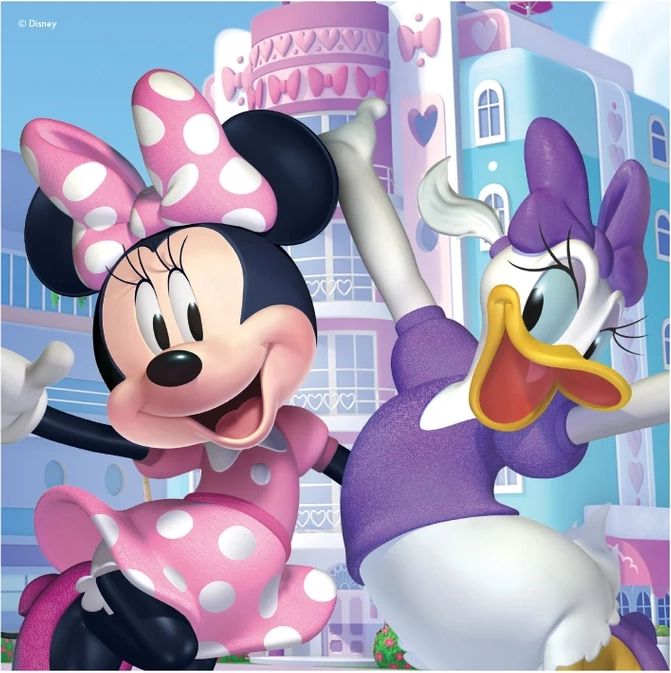 Ta kolekcja zawiera trzy oddzielne układanki z ulubionymi postaciami Minnie i Daisy. Dzięki mniejszemu formatowi puzzle łatwo układa się na stole i w podróży, a także świetnie sprawdzą się jako prezent dla przedszkolaków i młodszych uczniów.