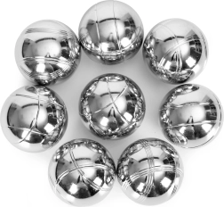 Błyszczące stalowe kule z wyrytymi liniami zapewniają pewny chwyt i szybkie rozpoznanie podczas gry. Trwała konstrukcja jest gotowa do użytku na zewnątrz.